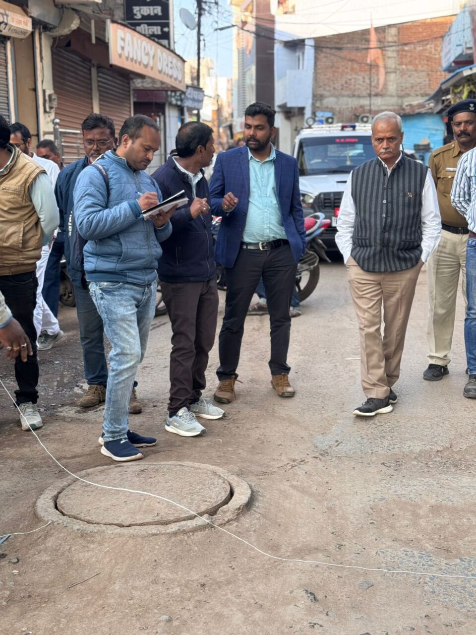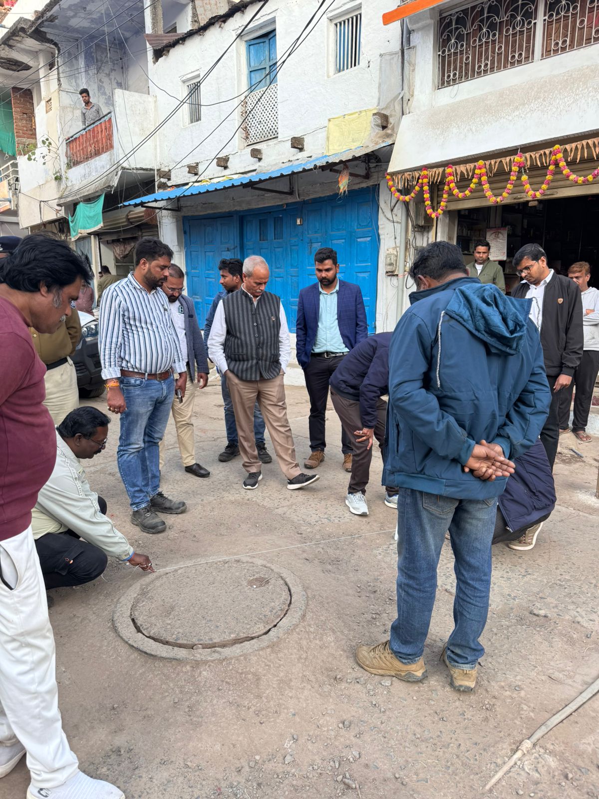 जनसुनवाई में प्राप्त शिकायत के आधार पर कलेक्टर सोमेश मिश्रा के निर्देशानुसार अपर कलेक्टर राजेन्द्र कुमार सिंह, डिप्टी कलेक्टर एवं परियोजना अधिकारी डूडा आशुतोष सिंह ठाकुर द्वारा निर्माणाधीन सीवरेज लाईन एवं नल कनेक्शन के कार्य का निरीक्षण किया गया। इस दौरान अपर कलेक्टर राजेन्द्र कुमार सिंह ने संबंधित को निर्माण कार्य बेहतर गुणवत्ता के साथ समय सीमा में पूर्ण करने के निर्देश दिए।