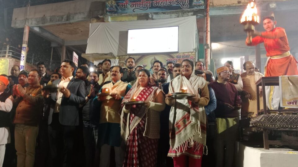 प्रदेश शासन की लोक स्वास्थ्य यांत्रिकी मंत्री श्रीमती संपतिया उइके और कलेक्टर श्री सोमेश मिश्रा गुरूवार को माँ नर्मदा नदी के माहिष्मती घाट में संध्याकालीन पंचचौकी महाआरती में शामिल हुए। पंचचौकी महाआरती का आयोजन अमृता चौक, रेवा चौक, नर्मदा चौक, शांकरी चौक और मेकलसुता चौक में संपन्न हुआ। माहिष्मती घाट में अधिकारी, कर्मचारी, समाजसेवी, श्रद्धालु, पत्रकार और नागरिकगण माहिष्मती घाट में आयोजित पंचचौकी महाआरती की। इस अवसर पर नर्मदा अष्टक गान ’पदीय पाद पंकजम नमामि देवी नर्मदे’ नर्मदा जी की पंचचौकी महाआरती उतारी गई,