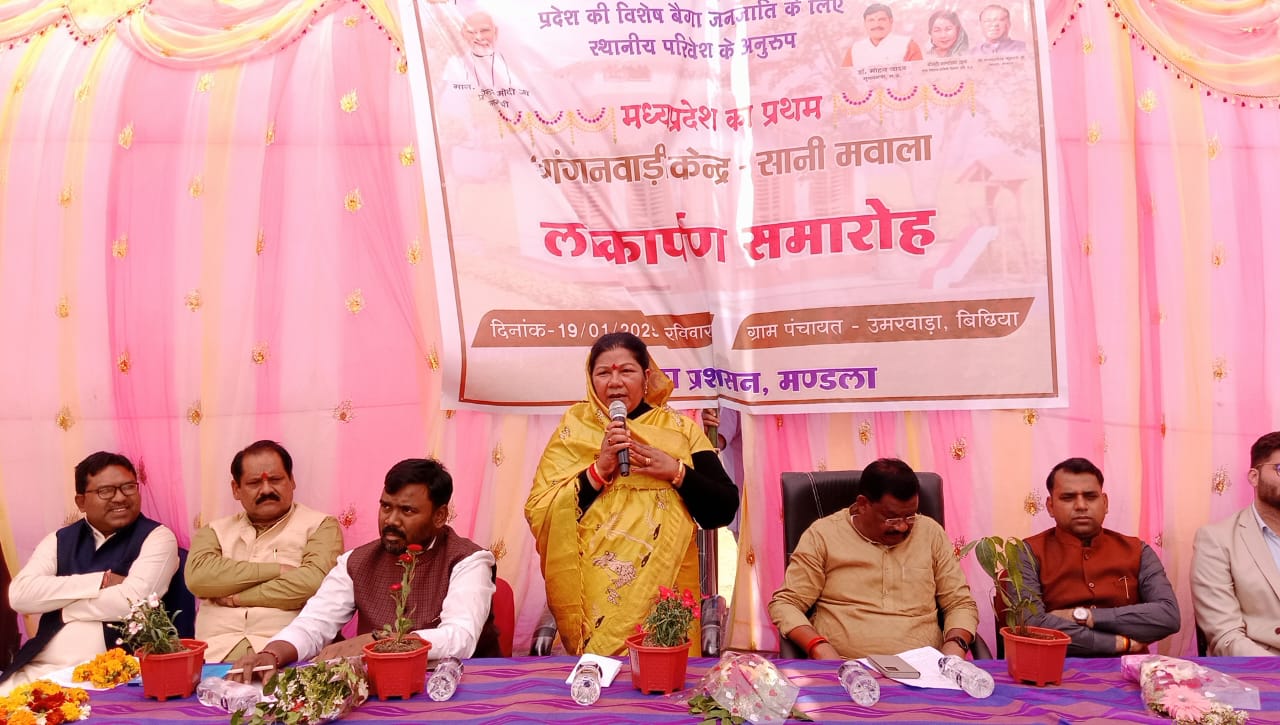 लोक स्वास्थ्य यांत्रिकी मंत्री श्रीमति संपतिया उइके ने कहा कि प्रधानमंत्री नरेन्द्र मोदी द्वारा जनमन योजना संचालित कर आदिवासी जनजाति समाज को मुख्य धारा से जोड़ने का प्रयास कर रही है। उन्होंने कहा कि प्रधानमंत्री जनमन योजना के तहत मण्डला जिले में प्रथम आंगनवाड़ी केन्द्र सानी मवाला का शुभांरभ हुआ। मंत्री श्रीमति उइके कहा कि आंगनवाड़ी में शिक्षा ग्रहण कर रहे नन्हें बच्चों का भौतिक विकास होगा। इस अवसर पर मंत्री श्रीमति संपतिया उइके ने नए आगंनवाड़ी भवन संचालन और प्रभावी क्रियान्वयन के लिए दिशा-निर्देश दिए। आयोजित कार्यक्रम को विधायक नारायण सिंह पटटा और जिला पंचायत अध्यक्ष संजय कुशराम ने भी संबोधित किया प्रधानमंत्री जनमन योजना के तहत नवनिर्मित आंगनवाड़ी भवन की लागत 12 लाख रूपए है।