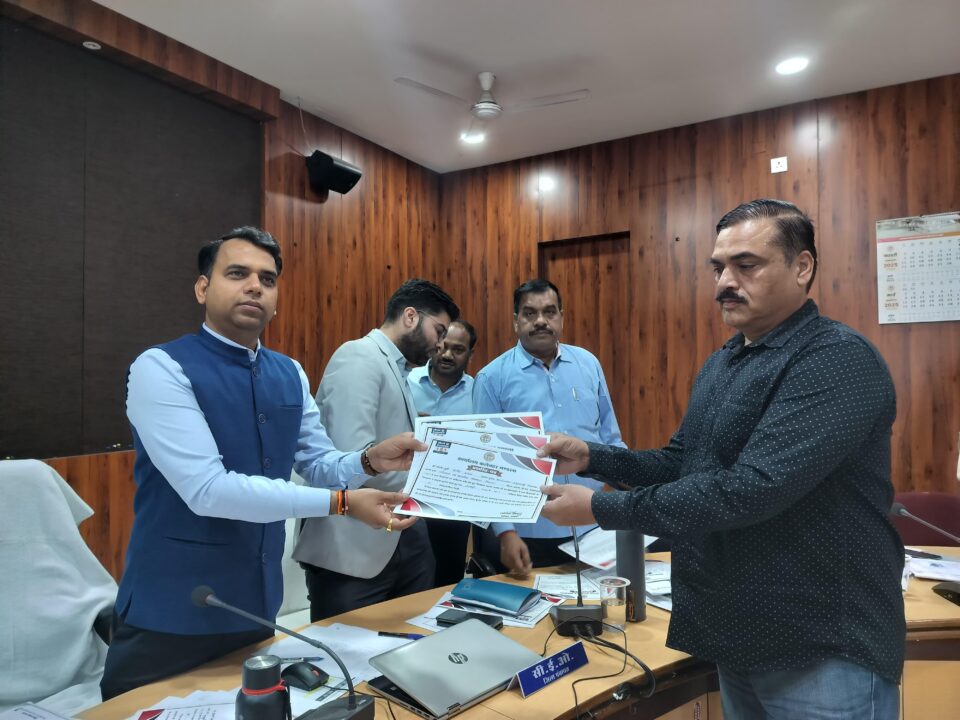 कलेक्टर श्री सोमेश मिश्रा ने जनवरी माह के सीएम हेल्पलाईन के प्रकरणों के निराकरण में मुख्य नगरपालिका अधिकारी निवास श्री शिवा सिंह लोधी को 100 वेटेज स्कोर के लिए प्रशस्ति पत्र देकर सम्मानित किया। उन्होंने कहा कि शिकायत के निराकरण में संतुष्टि स्तर को बेहतर रखें। इस दौरान सीईओ जिला पंचायत श्री श्रेयांश कूमट, संयुक्त कलेक्टर श्री सीएल वर्मा, डिप्टी कलेक्टर श्रीमती क्षमा सराफ, समस्त एसडीएम सहित संबंधित अधिकारी उपस्थित थे।