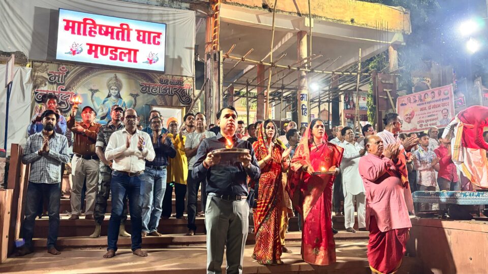 मध्यप्रदेश के मुख्यमंत्री श्री मोहन यादव के जन्मदिन के अवसर पर प्रदेश की केबिनेट मंत्री श्रीमती संपतिया उईके ने माँ नर्मदा जी का दुग्ध अभिषेक किया। इसके साथ नर्मदा जल में दीपदान कर मुख्यमंत्री श्री यादव के यशस्वी जीवन की कामना की। इस अवसर पर नगर पालिका परिषद के अध्यक्ष श्री विनोद कछवाहा, नगर भाजपा अध्यक्ष श्री रानू राजपूत, कलेक्टर श्री सोमेश मिश्रा, एसडीएम मण्डला श्रीमती सोनल सिडाम सहित श्रद्धालुजन उपस्थित रहे।