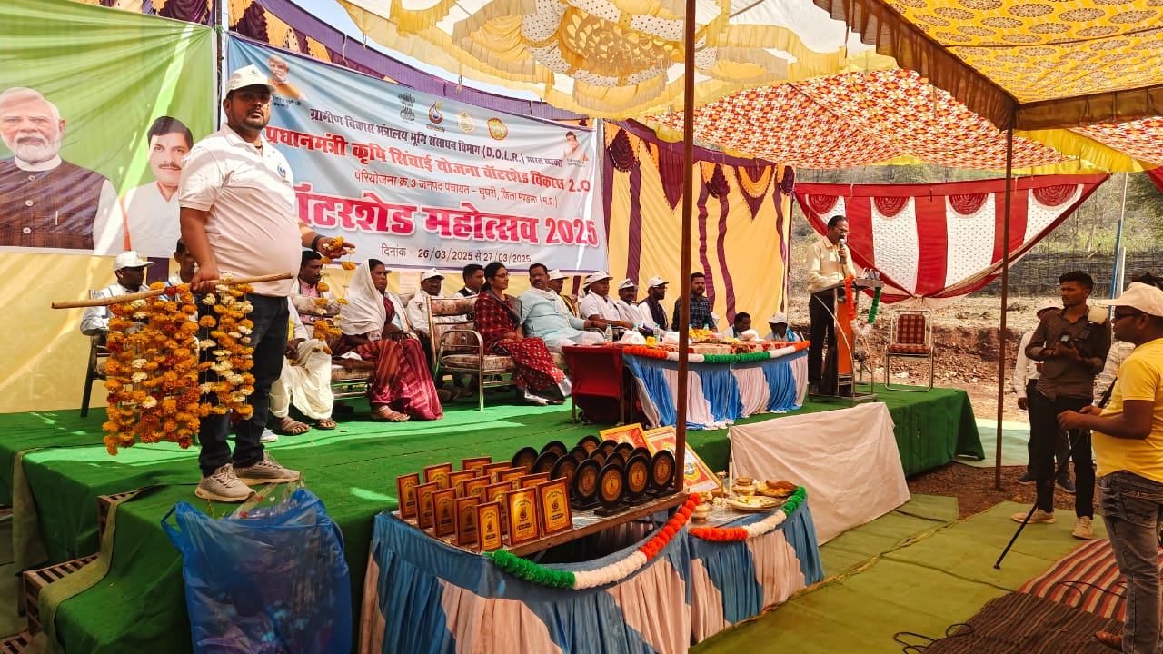 भारत सरकार के ग्रामीण विकास मंत्रालय भूमि संसाधन विभाग द्वारा संचालित प्रधानमंत्री कृषि सिंचाई वाटरशेड विकास योजना (पीएमकेएसवाई 2.0) के तहत परियोजना क्रमांक 3 जनपद पंचायत घुघरी जिला मंडला में चल रहे वाटरशेड यात्रा अभियान का भव्य समारोह कस्टम हायरिंग सेंटर भैंसवाही में संपन्न हुआ। इस अवसर पर विधायक श्री नारायण सिंह पट्टा, जिला पंचायत उपाध्यक्ष श्री कमलेश तेकाम, जिला पंचायत सदस्य सुश्री ललिता धुर्वे एवं श्रीमती गीता मरावी, मंडल अध्यक्ष श्री राजकुमार चौकसे, ब्लॉक कांग्रेस अध्यक्ष श्री अरविन्द कुशराम, निर्माण समिति अध्यक्ष श्री नीरज मरकाम, जनपद सदस्य श्री कलीराम धुर्वे, श्रीमती सेवकली मरावी, श्री भारत नंदा एवं समस्त सरपंचगण, जनप्रतिनिधिगण उपस्थित रहे।