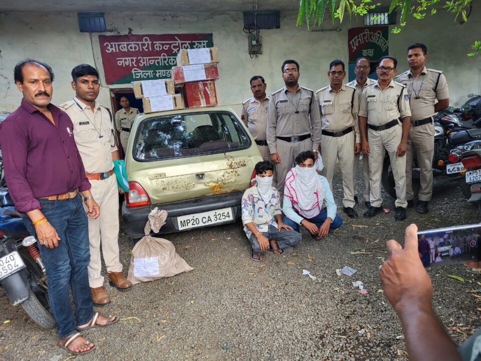 कलेक्टर श्री सोमेश मिश्रा के निर्देशन में मदिरा के अवैध संग्रहण, परिवहन एवं विक्रय के विरुद्ध सतत कार्यवाही की जा रही है। इसी कड़ी में वृत मण्डला के ग्राम नांदिया से बहेंगा रोड पर गश्त के दौरान सुनहरे रंग की मारुति 800 को संदेहास्पद स्थिति में रोककर तलाशी ली गई। इस दौरान अंशुल मोंगरे निवासी राधाकृष्ण वार्ड मण्डला एवं सौरभ उर्फ शंशाक पटेल सरदार पटेल वार्ड मण्डला के वाहन के पीछे सीट पर एवं डिक्की में देशी, विदेशी मदिरा 56.64 बल्क लीटर रखा होना पाया गया। मदिरा एवं गाड़ी को जप्त कर उक्त दोनों आरोपियों के विरुद्ध मध्यप्रदेश आबकारी अधिनियम की धारा 34(1)(क) एवं 34(2)अंतर्गत प्रकरण पंजीबद्ध किया गया। जप्त मदिरा एवं गाड़ी की अनुमानित कीमत 240000 रुपए है। उक्त दोनों आरोपियों को न्यायालय में पेश किया गया।