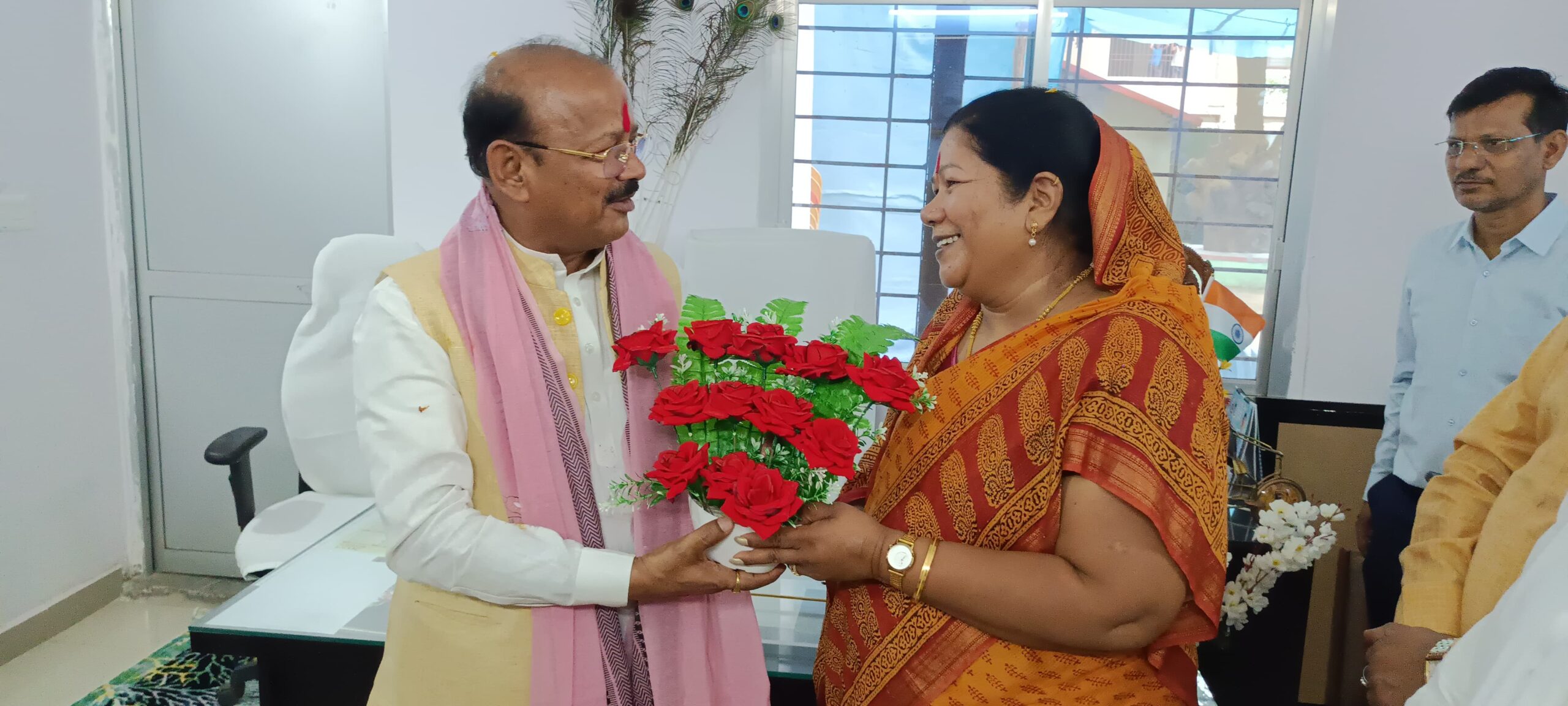 प्रभारी मंत्री श्री दिलीप जायसवाल ने कहा कि प्रदेश की विशेष पिछड़ी जनजातियों को प्रधानमंत्री जनमन आवास योजना से लाभान्वित करें। इन क्षेत्रों में बिजली, सड़क, पानी की उपलब्धता को सर्वोच्च प्राथमिकता दें। उन्होंने कहा कि हमारी सरकार सबका साथ, सबका विकास संकल्प के साथ कार्य कर रही है। समाज में अंतिम छोर के व्यक्ति तक शासन की योजनाओं का लाभ पहुंचाना हमारा दायित्व है। प्रभारी मंत्री ने कहा कि प्रधानमंत्री नरेन्द्र मोदी जी का संकल्प है कि सन् 2047 तक भारत को विकसित देश बनाया जायेगा। हमारी सरकार इसी दिशा में लगातार काम कर रही है। आयोजित बैठक में कलेक्टर श्री सोमेश मिश्रा और जिला पंचायत सीईओ श्री श्रेयांश कूमट ने बैठक एजेंडा के बारे में विस्तार से जानकारी दी। इससे हमारे प्रदेश के युवा, मजदूर, महिला एवं किसान सहित सभी वर्गों का कल्याण होगा। प्रभारी मंत्री श्री दिलीप जायसवाल ने आयोजित बैठक में मुख्यमंत्री पशुपालन योजना के तहत पशुपालकों को लाभान्वित किया।