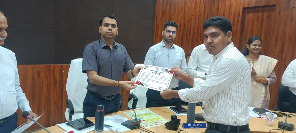कलेक्टर श्री सोमेश मिश्रा ने अप्रैल माह के सीएम हेल्पलाईन के प्रकरणों के निराकरण में तहसीलदार घुघरी चंद्रकुमार वट्टे 80.6 वेटेज स्कोर के लिए प्रशस्ति पत्र देकर सम्मानित किया। उन्होंने कहा कि शिकायत के निराकरण में संतुष्टि स्तर को बेहतर रखें। इस इवसर पर सीईओ जिला पंचायत श्रेयांश कूमट, अपर कलेक्टर श्री राजेन्द्र कुमार सिंह, अपर कलेक्टर श्री जेपी यादव सहित समस्त एसडीएम तथा संबंधित अधिकारी उपस्थित थे।