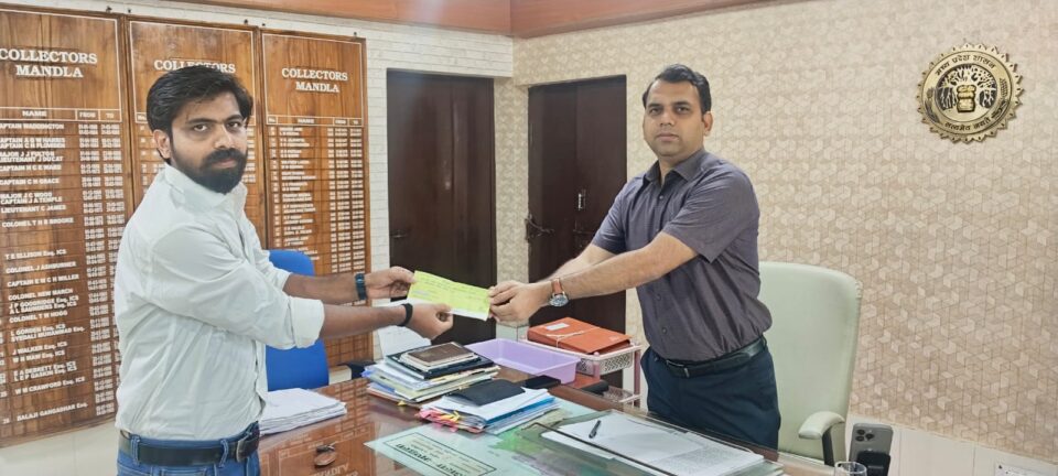 कलेक्टर श्री सोमेश मिश्रा के समक्ष समाजसेवी श्री पंकज सोनी ने पंचचैकी महाआरती ट्रस्ट में न्यनूतम नियत राशि का चैक देकर पूर्णकालिक आजीवन सदस्यता हासिल की।
