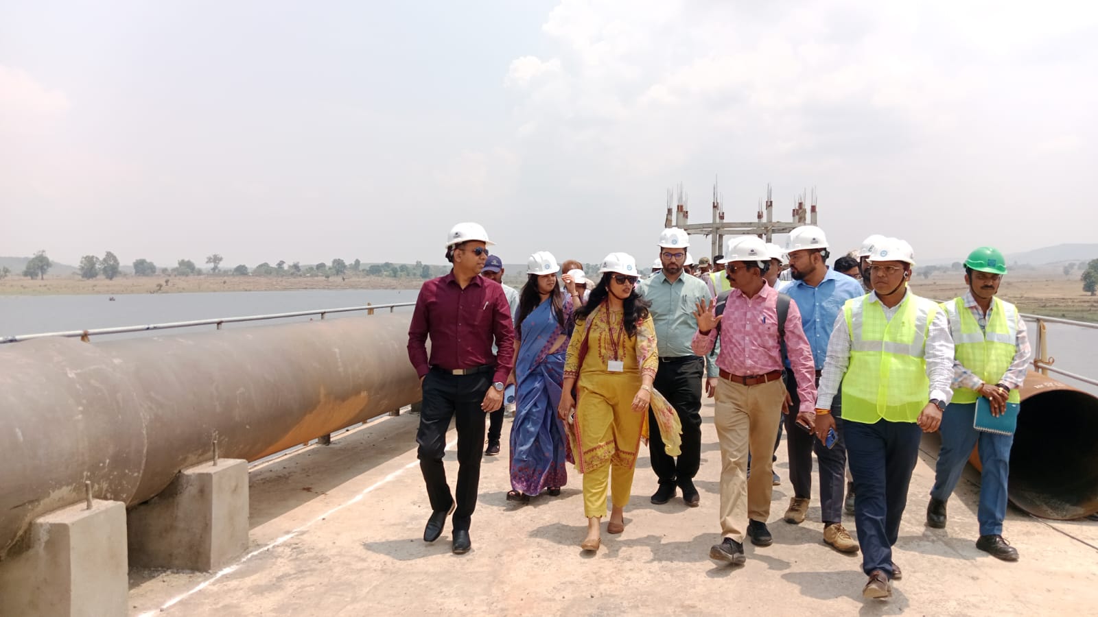 जल जीवन मिशन के केन्द्रीय दल के अधिकारियों ने बिछिया विकासखंड के ग्राम करंजिया में स्थित हालोन डेम के प्रगतिरत इंटेकवेल के कार्य का निरीक्षण किया। दल में सूचना एवं प्रसारण मंत्रालय के संयुक्त सचिव तथा सेन्ट्रल नोडल अधिकारी जल जीवन मिशन श्रीमती वृंदा मनोहर देसाई और जल जीवन मिशन के राष्ट्रीय जलतज्ञ के तकनीकि अधिकारी श्री सुरेश चंद्रन शामिल थे। इस दौरान श्रीमती देसाई ने साईट पर संबंधित अधिकारियों से इंटेकवेल के कार्य के संबंध में जानकारी ली तथा आवश्यक निर्देश दिये। अधिकारियों ने बताया कि निर्माण का लगभग 70 प्रतिशत कार्य पूर्ण किया जा चुका है। साथ ही इलेक्ट्रीफिकेशन का कार्य भी दो सप्ताह में पूर्ण कर लिया जायेगा। इस अवसर पर कलेक्टर श्री सोमेश मिश्रा, सीईओ जिला पंचायत श्री श्रेयांश कूमट, एसडीएम बिछिया श्रीमती सोनाली देव सहित जल जीवन मिशन के अधिकारी, कर्मचारी उपस्थित थे।