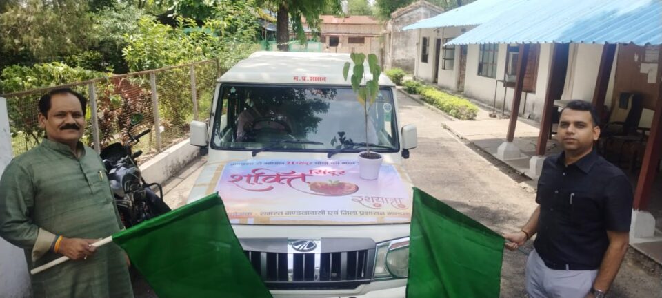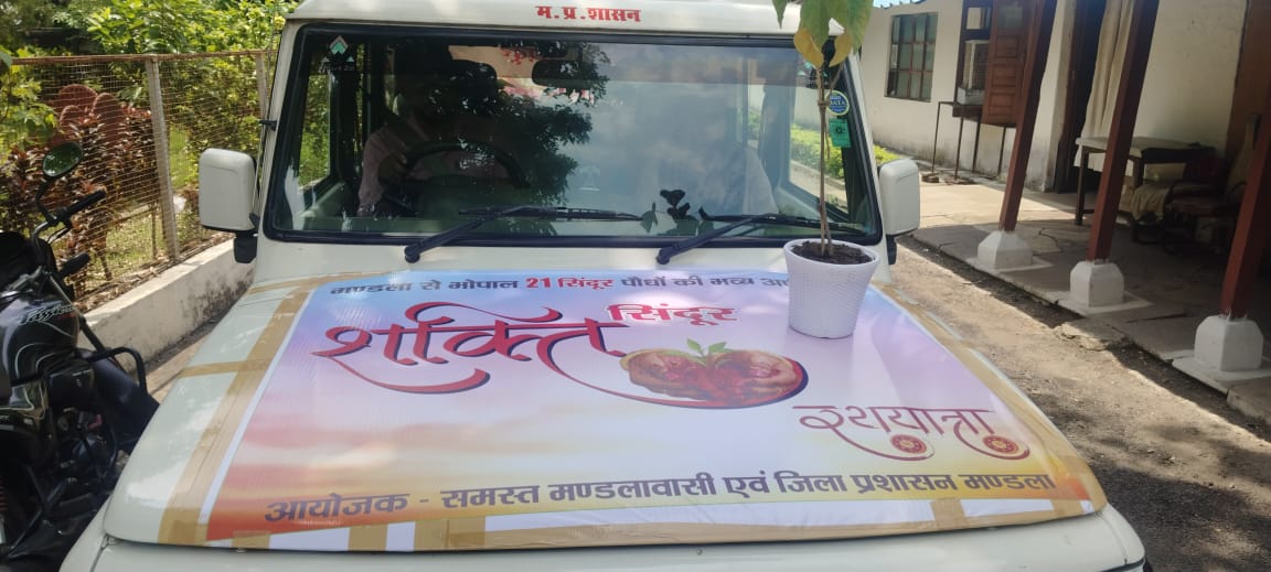 मण्डला जिले के समस्त नागरिकों की ओर से ’ऑपरेशन सिंदूर’ की सफलता के उपलक्ष्य में माननीय प्रधानमंत्री श्री नरेंद्र मोदी जी के भोपाल आगमन पर सिंदूर के पौधे भेंट किये जाएंगे। मण्डला कलेक्टर श्री सोमेश मिश्रा और जिला भाजपा अध्यक्ष श्री प्रफुल्ल मिश्रा ने मंडला से सिंदूर के पौधे लेकर जाने वाले शक्ति सिंदूर रथ को हरी झंडी दिखाकर रवाना किया। इस अवसर पर अपर कलेक्टर श्री राजेन्द्र कुमार सिंह, श्री अरविंद सिंह सहित संबंधित उपस्थित थे।