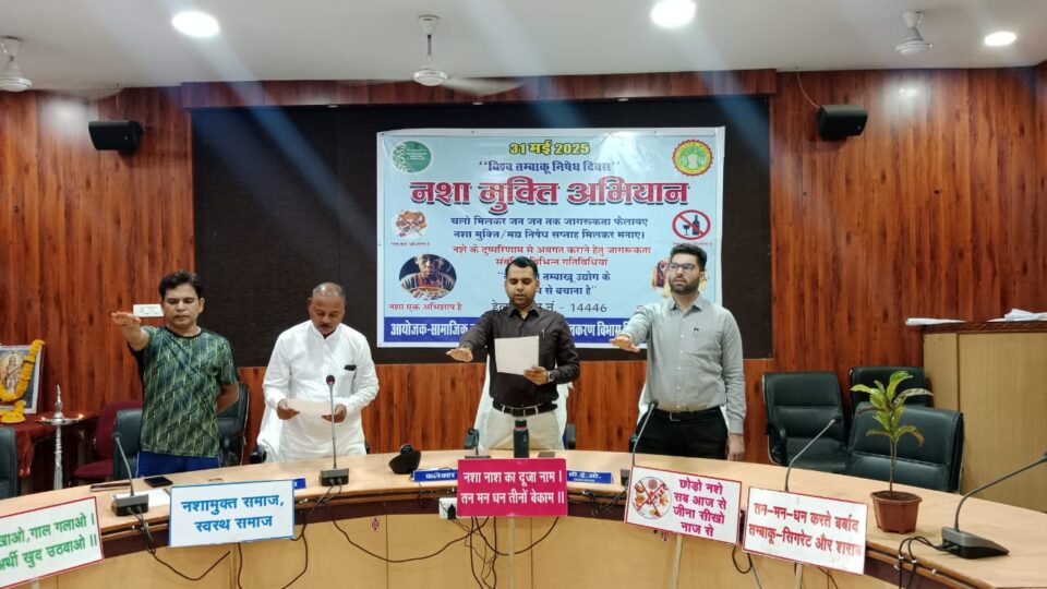 31 मई विश्व तम्बाखू निषेध दिवस के अवसर पर जिला योजना भवन में जागरूकता कार्यक्रम का आयोजन किया गया। कार्यक्रम में नगरपालिका परिषद अध्यक्ष श्री विनोद कछवाहा, कलेक्टर श्री सोमेश मिश्रा, सीईओ जिला पंचायत श्री श्रेयांश कूमट, अतिरिक्त पुलिस अधीक्षक श्री शिवकुमार वर्मा, उपसंचालक सामाजिक न्याय श्री रोहित बड़कुल शामिल हुए। इस अवसर पर मुख्य अतिथि नगरपालिका अध्यक्ष श्री विनोद कछवाहा ने कहा कि समाज में नशा एक सामाजिक बुराई है जिसे मिटाने के लिए हम सबको जिम्मेदारी उठानी पड़ेगी, इसके लिए आवश्यक है कि हम सभी मिलकर समाज में जागरूकता फैलाएं। नशे के कारण हमारे समाज में बहुत से घर उजड़ जाते हैं। तम्बाखू तथा तम्बाखू से बने हुए उत्पाद मानव जीवन के लिए कितने घातक हैं इसके विषय में लोगों को जागरूक करते हुए इस नशे से दूर करने में हमें अपनी भूमिका निभानी पड़ेगी। कार्यक्रम को संबोधित करते हुए कलेक्टर श्री सोमेश मिश्रा ने कहा कि किसी भी समाज में किसी भी प्रकार का नशा व्यक्ति के लिए न सिर्फ अपमान का कारण बनता है बल्कि यह उनकी पीढ़ियों को भी नुकसान पहुंचाता है।