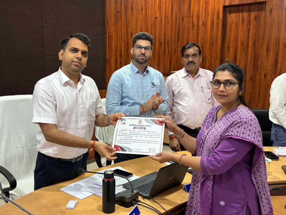 कलेक्टर श्री सोमेश मिश्रा ने मई माह के सीएम हेल्पलाईन के प्रकरणों के निराकरण में कविता गुप्ता जिला प्रबंधक लोक सेवा को 100 वेटेज स्कोर के लिए प्रशस्ति पत्र देकर सम्मानित किया। उन्होंने कहा कि शिकायत के निराकरण में संतुष्टि स्तर को बेहतर रखें। इस दौरान सीईओ जिला पंचायत श्रेयांश कूमट, अपर कलेक्टर श्री राजेन्द्र कुमार सिंह, संयुक्त कलेक्टर सीएल वर्मा डिप्टी कलेक्टर क्षमा सराफ सहित समस्त एसडीएम तथा संबंधित अधिकारी उपस्थित थे।