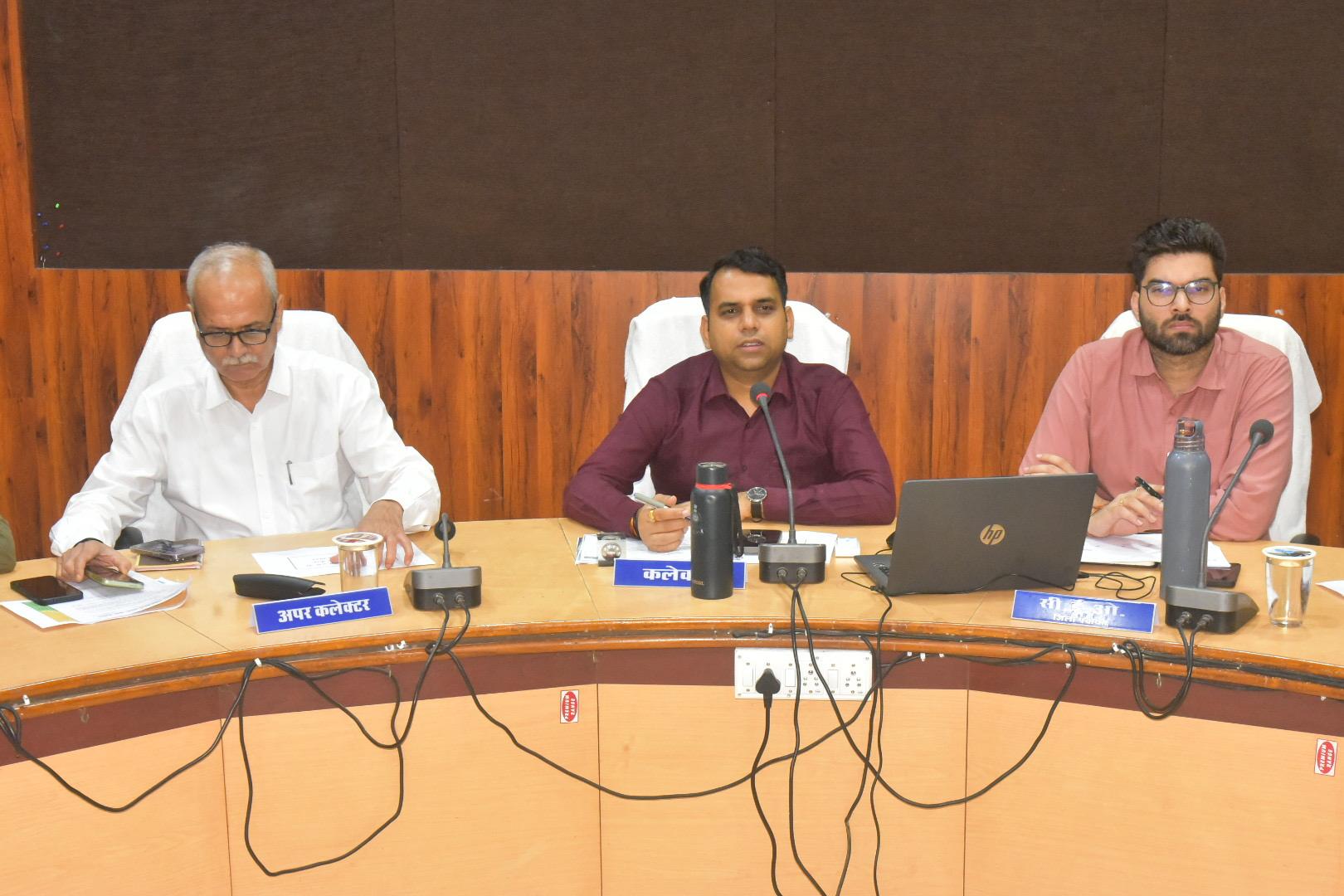 कलेक्टर श्री सोमेश मिश्रा ने जिला योजना भवन में समय-सीमा बैठक में सीएम हेल्पलाइन, धरती आबा अभियान, समग्र ई-केवायसी, ई-ऑफिस, बीजांकुर अभियान की विस्तार से समीक्षा की। कलेक्टर श्री मिश्रा ने बैठक में मौजूद संबंधित अधिकारियों को टीएल के समस्त प्रकरणों का निराकरण समय पर करने के निर्देश दिए। सीएम डैशबोर्ड की समीक्षा करते हुए उन्होंने कहा कि विभाग की रैंकिंग संतोषजनक नहीं है। इसमें विभागों के लिए निर्धारित इंडीकेटर्स में विभाग की प्रगति आशानुरूप नहीं होने पर इसमें शीघ्र सुधार करने के निर्देश भी दिए। बैठक में सीईओ जिला पंचायत श्री श्रेयांश कूमट, अपर कलेक्टर श्री राजेन्द्र कुमार सिंह, संयुक्त कलेक्टर श्री सीएल वर्मा, डिप्टी कलेक्टर श्रीमती क्षमा सराफ, समस्त एसडीएम सहित सभी अन्य जिलाधिकारी उपस्थित रहे। ब्लॉक स्तरीय अधिकारी वीसी के माध्यम से जुड़े रहे।