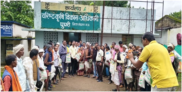 कलेक्टर श्री सोमेश मिश्रा के निर्देशन और उप संचालक कृषि मंडला श्री अश्वनी झारिया के मार्गदर्शन में कार्यालय वरिष्ठ कृषि विकास अधिकारी घुघरी में परियोजना संचालक आत्मा श्री आर.डी. जाटव, जनपद अध्यक्ष श्रीमति जानिया बाई मरावी, उपाध्यक्ष श्री सिहारे करचाम, जनपद सदस्य श्री मुकेश मार्को, सेवकराम साहू, इंद्रवती सोनवानी, सुनीता उलाड़ी, सविता मरावी, पुष्पा झारिया, नीरज मरकाम, सुरेंद्र धुर्वे, मंडल अध्यक्ष एवं समस्त कृषि स्टॉफ तथा विभिन्न ग्रामों से आए किसानों को कोदो, कुटकी और रागी बीज का वितरण किया गया।