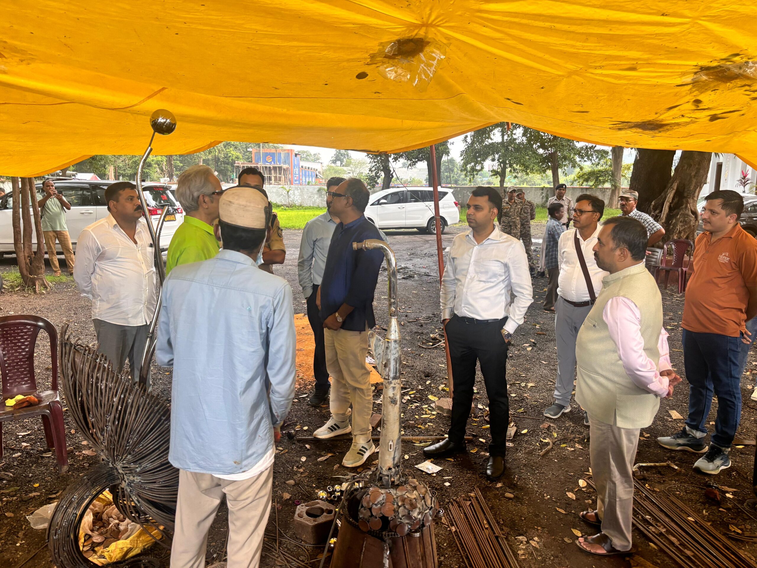 कलेक्टर श्री सोमेश मिश्रा ने मंगलवार को ढाबे पर पहुँचकर कलाकृतियों को देखा और इनकी सराहना की। उन्होंने कहा कि वेस्ट मटेरियल का उपयोग कर इतनी शानदार कलाकृतियों को बनाया जा रहा है। इन्हें हम स्थानीय पार्क और अन्य स्थानों पर लगवाएंगे ताकि हमारे युवा और बच्चे इनसे प्रेरणा लें। वेस्ट मटेरियल से रायपुर छत्तीसगढ़ के श्री जितेंद्र साहू ने राजकीय पक्षी दुग्धराज की, श्री नरेन्द्र देवांगन ने एनवायरमेंट बैलेंस (बरगद वृक्ष) जबलपुर के अमित कुमार सिन्हा ने हैदर रजा और स्वामीनाथन की उत्कृष्ट फोटो, खैरागढ़ छत्तीसगढ़ के श्री सुमित वर्मा ने कमल का फूल और ब्रजेश सेन ने दीप प्रज्ज्वलन स्टैंड बनाकर प्रदर्शित किया है। कलेक्टर श्री मिश्रा के साथ पुलिस अधीक्षक श्री रजत सकलेचा, सीईओ जिला पंचायत श्री श्रेयांस कूमट सहित संबंधित उपस्थित रहे।