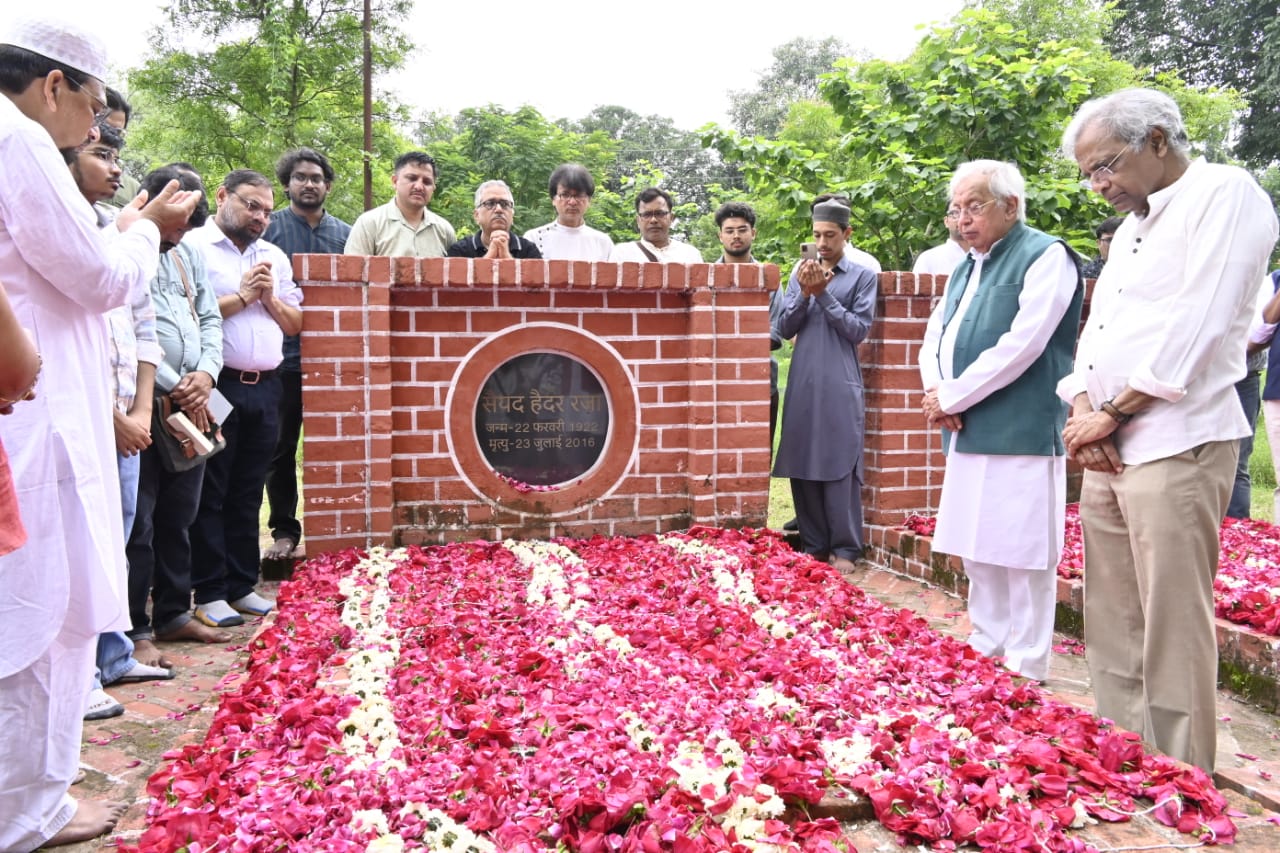 मंडला – बुधवार को पद्मश्री, पद्मभूषण और पद्मविभूषण से सम्मानित महान चित्रकार सैयद हैदर रज़ा की 9वीं पुण्यतिथि पर उन्हें पुष्पांजलि दी गई। रज़ा फाउंडेशन द्वारा आयोजित रज़ा स्मृति में शामिल होने आए कवि, विभिन्न कलाकार व उनके सभी चाहने वाले स्थानीय बिंझिया स्थित कब्रिस्तान में हैदर रज़ा और उनके पिता की कब्र पर चादर चढ़ाई व पुष्प अर्पित किए। बता दे कि हैदर रज़ा का लगभग 95 वर्ष की आयु में 23 जुलाई 2016 को दिल्ली में निधन हुआ था। उनकी इच्छा के मुताबिक उनके पार्थिव शरीर को मंडला लाकर उनके वालिद की कब्र के बगल में पूरे राजकीय सम्मान के साथ सुपुर्द ए खाक किया गया था। तब से ही रज़ा फाउंडेशन द्वारा उनकी याद में रज़ा स्मृति का आयोजन मंडला में किया जा रहा है। इसमें स्थानीय कलाकारों के साथ – साथ देश के अलग – अलग जगहों से कलाकार शामिल हो रहे है।