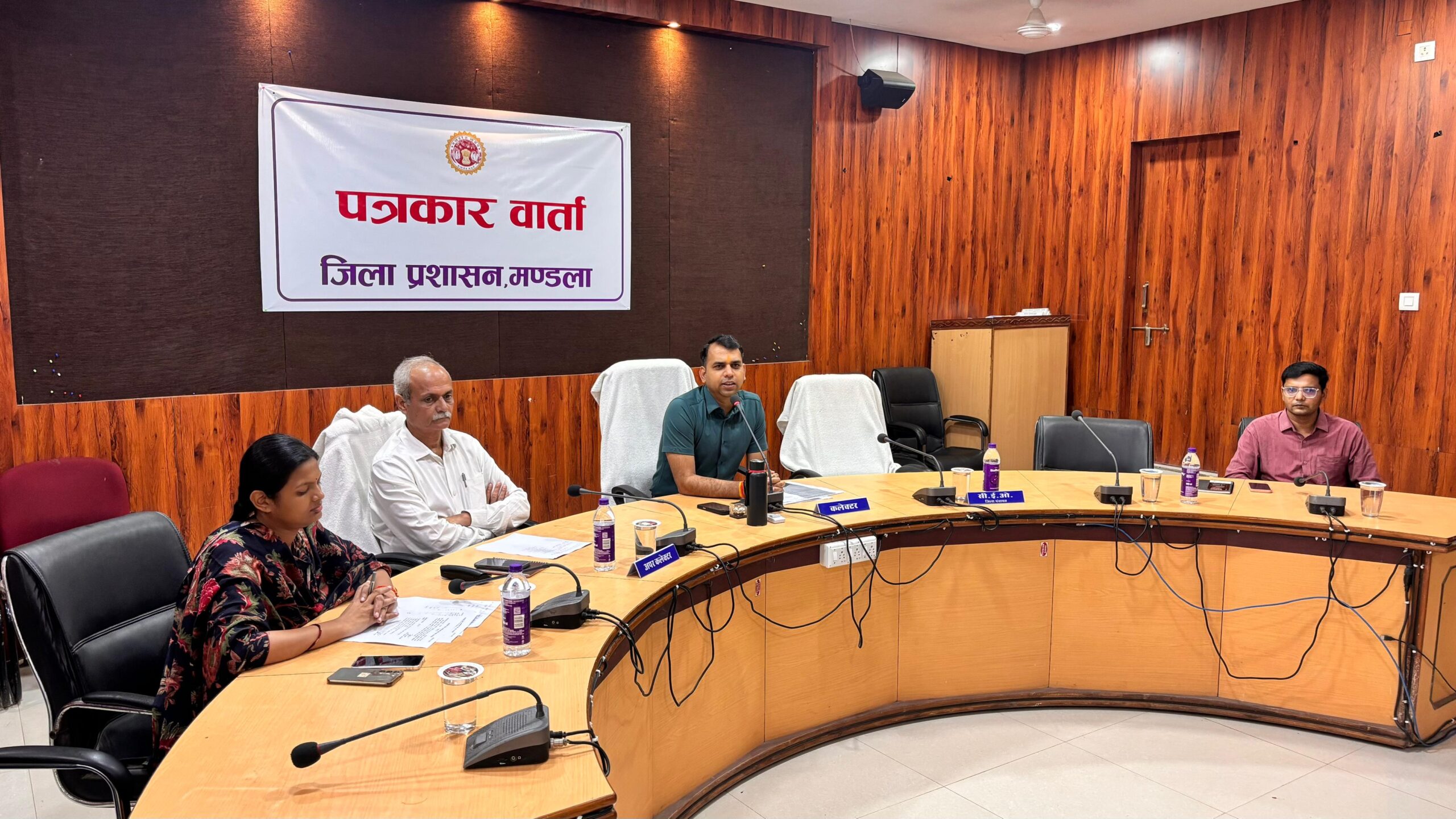 पत्रकार वार्ता के दौरान जिला योजना भवन में अपर कलेक्टर श्री राजेन्द्र कुमार सिंह, एसडीएम मंडला श्रीमती सोनल सिडाम, तहसीलदार (राजस्व) मंडला श्री हिमांशु भलावी, अतिरिक्त तहसीलदार नजूल मंडला श्री पुष्पेन्द्र पन्द्रे सहित पत्रकारगण उपस्थित रहे।