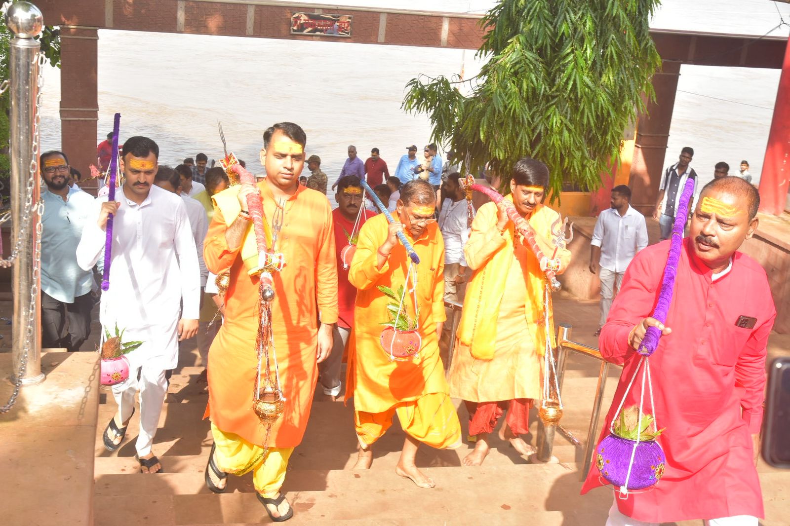 कांवड़ यात्रा की शुरूआत माहिष्मती घाट में नर्मदापूजन के साथ की गई। माँ नर्मदा मंदिर के सामने पुलिस बैंड द्वारा माँ नर्मदा आरती की धुन के साथ यात्रा को गंतव्य के लिए आगे बढ़ाया गया। कांवड़ यात्रा माहिष्मती घाट से सर्किटहाउस चौक, नेहरूस्मारक, बैगा-बैगी चौक, रेडक्रॉस, बड़चौराहा, उदयचौक, बुधवारी बाजार से होते हुए किलाघाट में स्थित व्यासनारायण मंदिर परिसर में संपन्न हुई। यात्रा में 151 कांवड़ यात्रियों ने माँ नर्मदा का पवित्र जल व्यासनारायण मंदिर में शिवलिंग पर अर्पित किया। यात्रा में शामिल सांसद, जिला पंचायत अध्यक्ष, नगरपालिका अध्यक्ष, जिला पंचायत सदस्य, कलेक्टर, एसपी तथा सीईओ जिला पंचायत ने व्यासनारायण मंदिर परिसर में हवन एवं आरती कर जिलेवासियों के कल्याण की कामना की। यात्रा में शामिल श्रद्धालुओं को मंदिर परिसर में फलाहार का वितरण किया गया। इस दौरान अपर कलेक्टर श्री अरविंद सिंह, एसडीएम मंडला श्रीमती सोनल सिडाम, तहसीलदार मंडला श्री हिमांशु भलावी, श्री पुष्पेन्द्र पंद्रे, तहसीलदार बम्हनी वृत श्री हीरालाल तिवारी सहित विभिन्न विभागीय अधिकारी, कर्मचारी तथा श्रद्धालुजन बड़ी तादात में मौजूद रहे।
