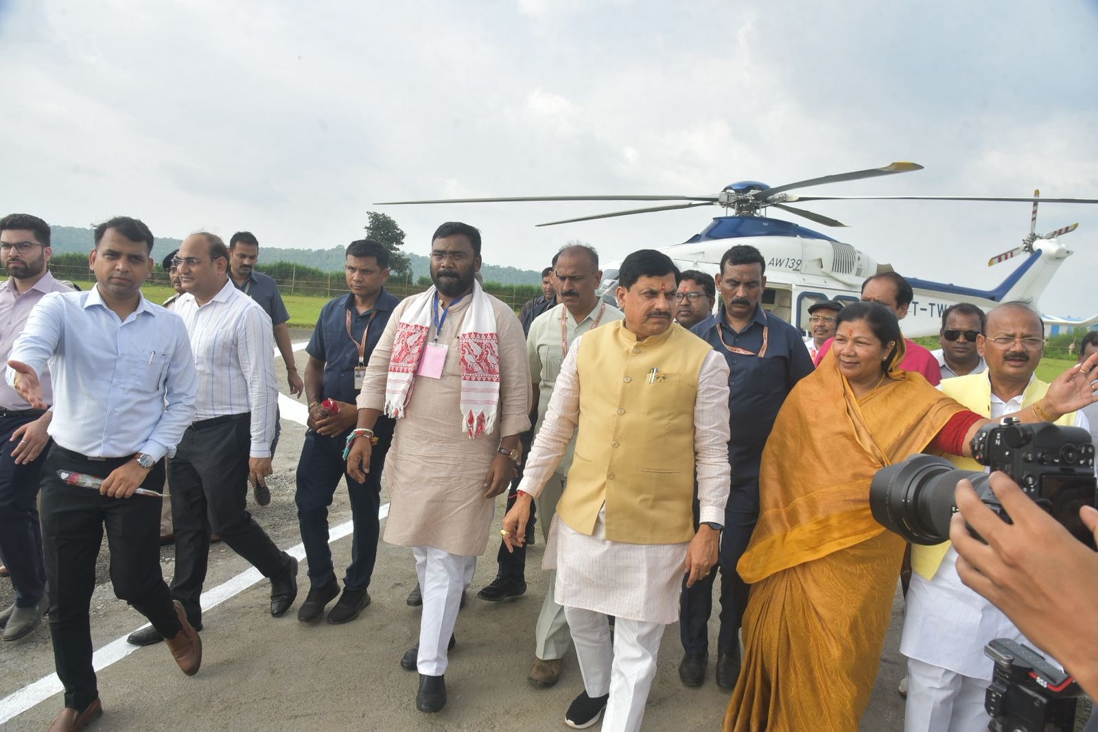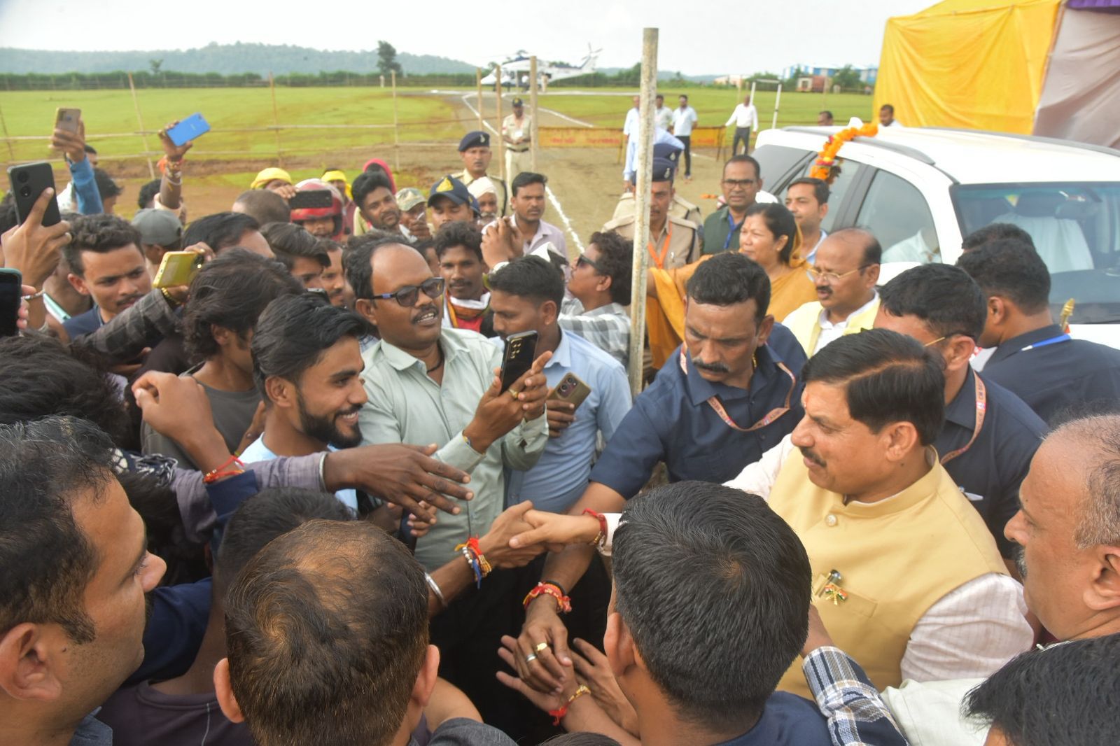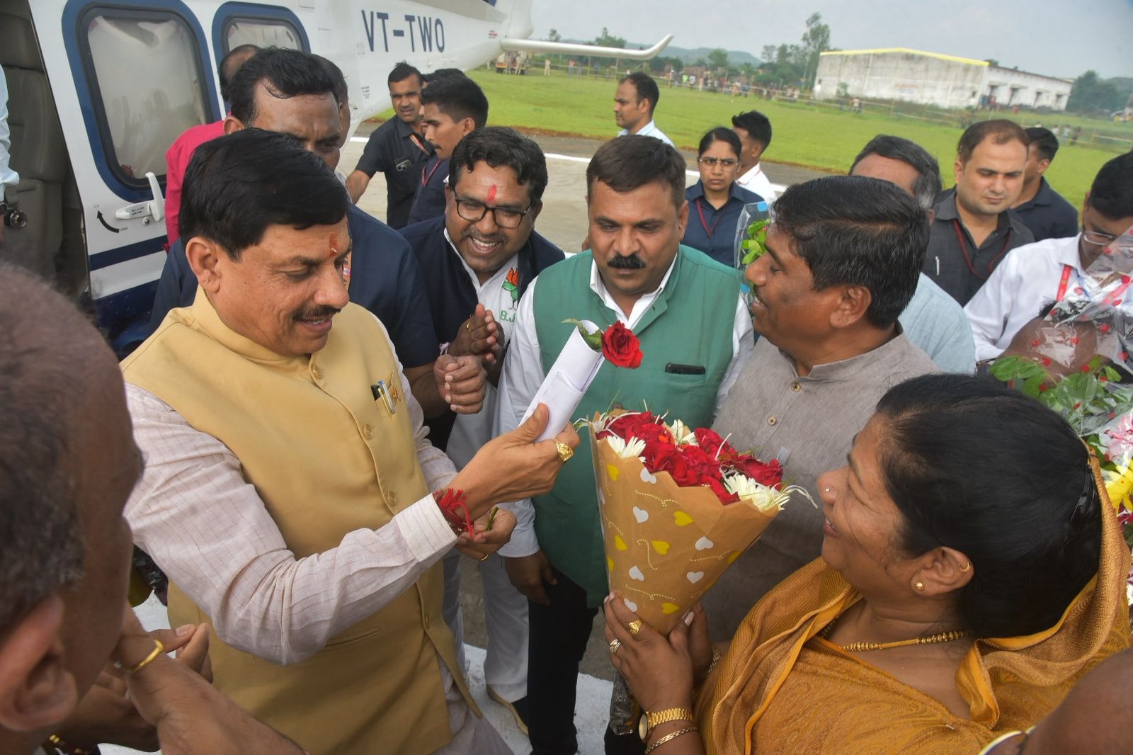 मुख्यमंत्री डॉ. मोहन यादव का गुरूवार को मंडला के सेमरखापा स्थित हेलीपेड पर आगमन हुआ। उनके साथ सांसद श्री फग्गन सिंह कुलस्ते भी साथ पहुंचे। मुख्यमंत्री डॉ. यादव के हेलीपेड आगमन पर प्रदेश शासन की लोक स्वास्थ्य यांत्रिकी मंत्री श्रीमती संपतिया उइके, कुटीर एवं ग्रामोद्योग राज्यमंत्री (स्वतंत्र प्रभार) एवं जिले के प्रभारी मंत्री श्री दिलीप जायसवाल, जिला पंचायत अध्यक्ष श्री संजय कुशराम, श्री प्रफुल्ल मिश्रा सहित अन्य जनप्रतिनिधियों ने पुष्पगुच्छ भेंट कर भव्य एवं आत्मीय स्वागत किया।