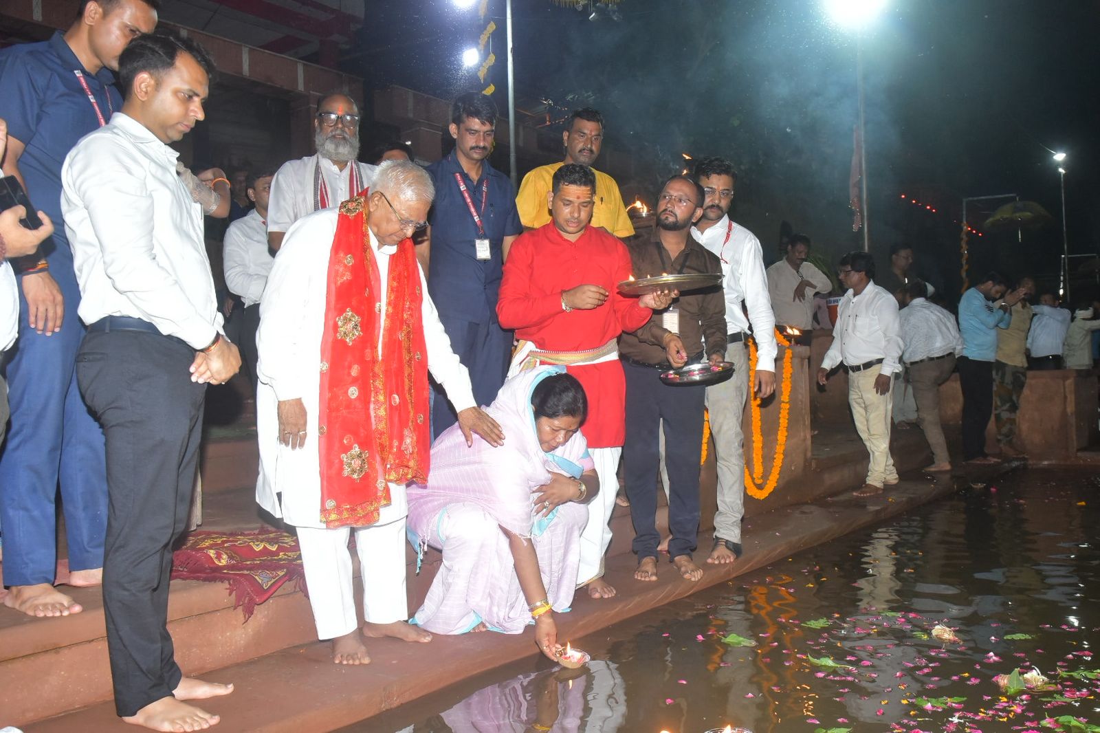 इस दौरान नमामि नर्मदे महाआरती ट्रस्ट के सदस्यगण, श्री विनय मिश्रा, अपर कलेक्टर श्री राजेन्द्र कुमार सिंह, एसडीएम मण्डला श्रीमती सोनल सिडाम, तहसीलदार श्री हिमांशु भलावी सहित बड़ी संख्या में श्रृद्धालुजन उपस्थित रहे। महाआरती के पश्चात नमामि नर्मदे महाआरती ट्रस्ट की ओर से कलेक्टर श्री सोमेश मिश्रा एवं श्री प्रफुल्ल मिश्रा ने राज्यपाल श्री पटेल को दुपट्टा भेंट कर नर्मदा तट पर उनका अभिनंदन किया। स्मृतिचिन्ह के रूप में मंत्री श्रीमती उइके एवं कलेक्टर श्री मिश्रा ने राज्यपाल को माँ नर्मदा का छायाचित्र भेंट किया।