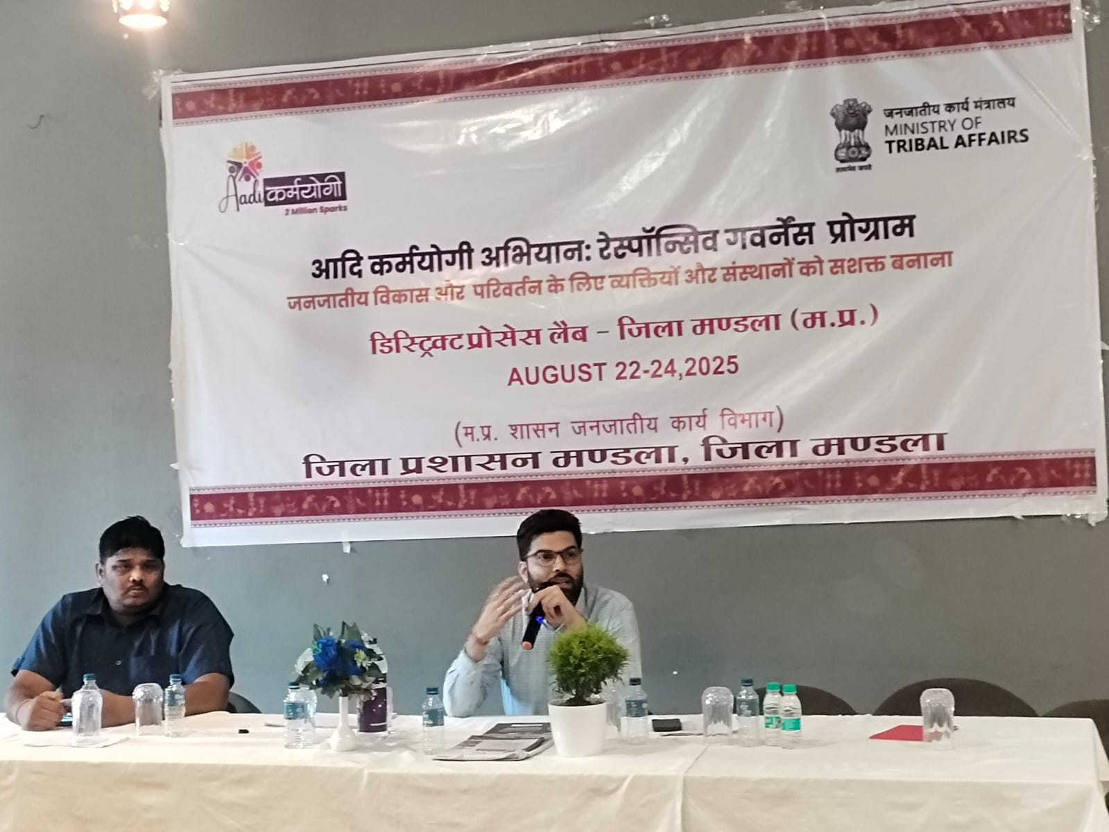 जिला मुख्यालय में आदि कर्मयोगी अभियान अंतर्गत तीन दिवसीय प्रशिक्षण कार्यशाला का आयोजन किया गया। रिस्पांसिव गवर्नेंस प्रोग्राम के तहत नगर के एक निजी मोटल के बैंक्वेट हाल में आयोजित की गई इस प्रशिक्षण कार्यशाला का उद्देश्य जनजातीय विकास और परिवर्तन के लिए व्यक्तियों एवं संस्थाओं को सशक्त बनाना है।