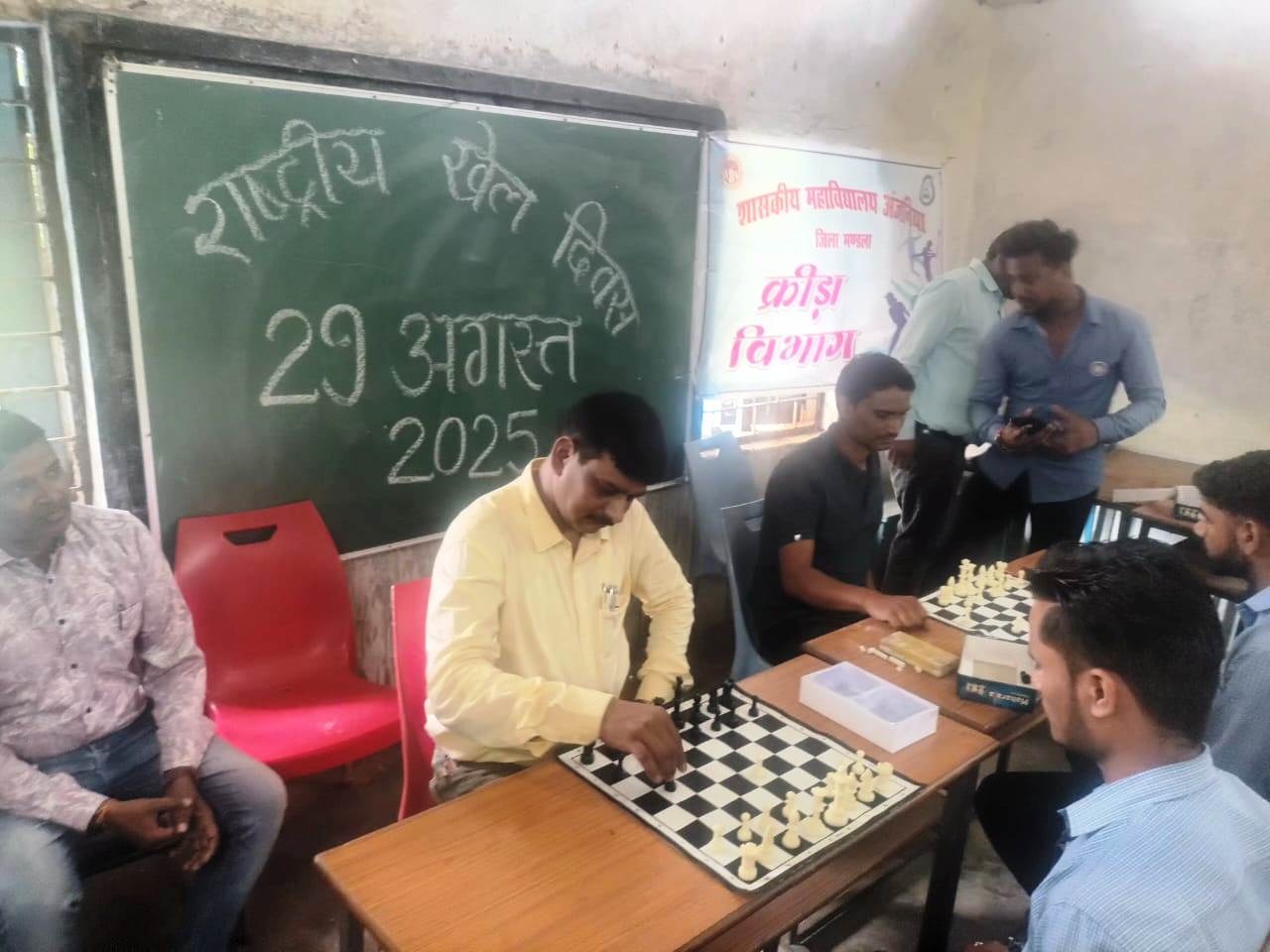 कार्यक्रम को संबोधित करते हुए प्रभारी प्राचार्य ने कहा कि हमें नियमित रूप से व्यायाम करना चाहिए। खेल से शरीर स्वस्थ रहता है। क्रीड़ाधिकारी डॉ. प्रशांत कुमार यादव ने मेजर ध्यानचंद के जीवन परिचय से विद्यार्थियों को अवगत कराते हुए खेल के प्रति समर्पण से विद्यार्थियों को अवगत कराया। इसके पश्चात प्राचार्य द्वारा शतरंज खेल प्रतियोगिता का शुभारंभ किया गया। इस अवसर पर महाविद्यालय से डॉ. विजय मौर्य, डॉ. सुरेंद्र लिल्हारे, डॉ. घनश्याम झरिया, डॉ. गरिमा छाबड़ा, श्री संदीप चौरसिया, श्री संतोष नंदा एवं छात्र छात्राएं उपस्थित रहे।
