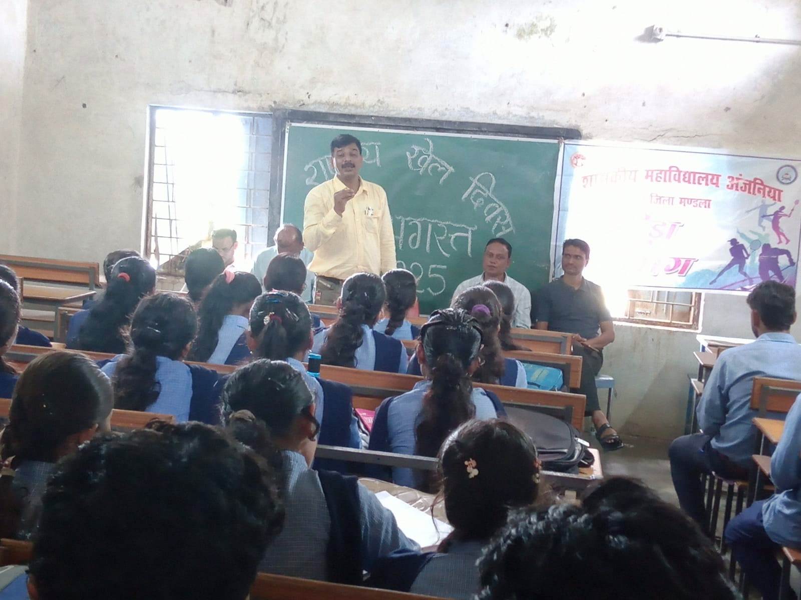 मध्यप्रदेश शासन उच्च शिक्षा एवं खेल युवा कल्याण विभाग के निर्देशानुसार शासकीय महाविद्यालय अंजनिया के क्रीड़ा विभाग तथा स्वामी विवेकानंद कैरियर मार्गदर्शन प्रकोष्ठ के संयुक्त तत्वाधान में राष्ट्रीय खेल दिवस के अवसर पर कार्यक्रमों का आयोजन प्रभारी प्राचार्य डॉ. नवीन कुमार हरदहा के मार्गदर्शन में किया गया।