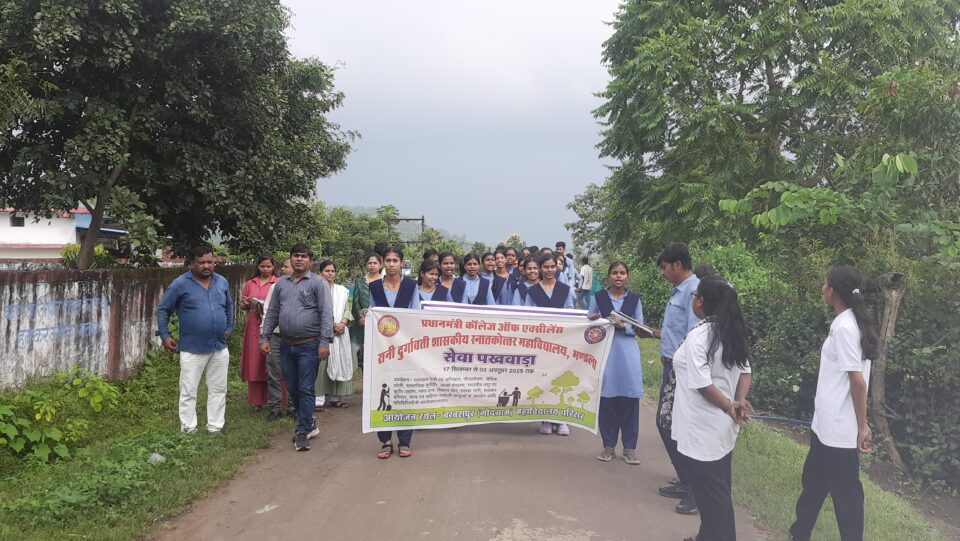 प्रधानमंत्री कॉलेज ऑफ एक्सीलेंस रानी दुर्गावती शासकीय स्नातकोत्तर महाविद्यालय मंडला में प्रभारी प्राचार्य टी.पी. मिश्रा के निर्देशन में सेवा पखवाड़ा अभियान के अंतर्गत जैविक खेती को बढ़ावा देने के लिए रैली निकाली गई। ग्राम बरबसपुर में जैविक खेती के विभिन्न फायदे के बारे में चर्चा की गई। कार्यक्रम में प्राध्यापक, डॉ. मनीषा सूर्य, डॉ. अनीता झरिया, डॉ. नितिका रघुवंशी एवं प्रोफेसर जयंती पटेल, सहित महाविद्यालय से अनेक विद्यार्थी उपस्थित रहे।