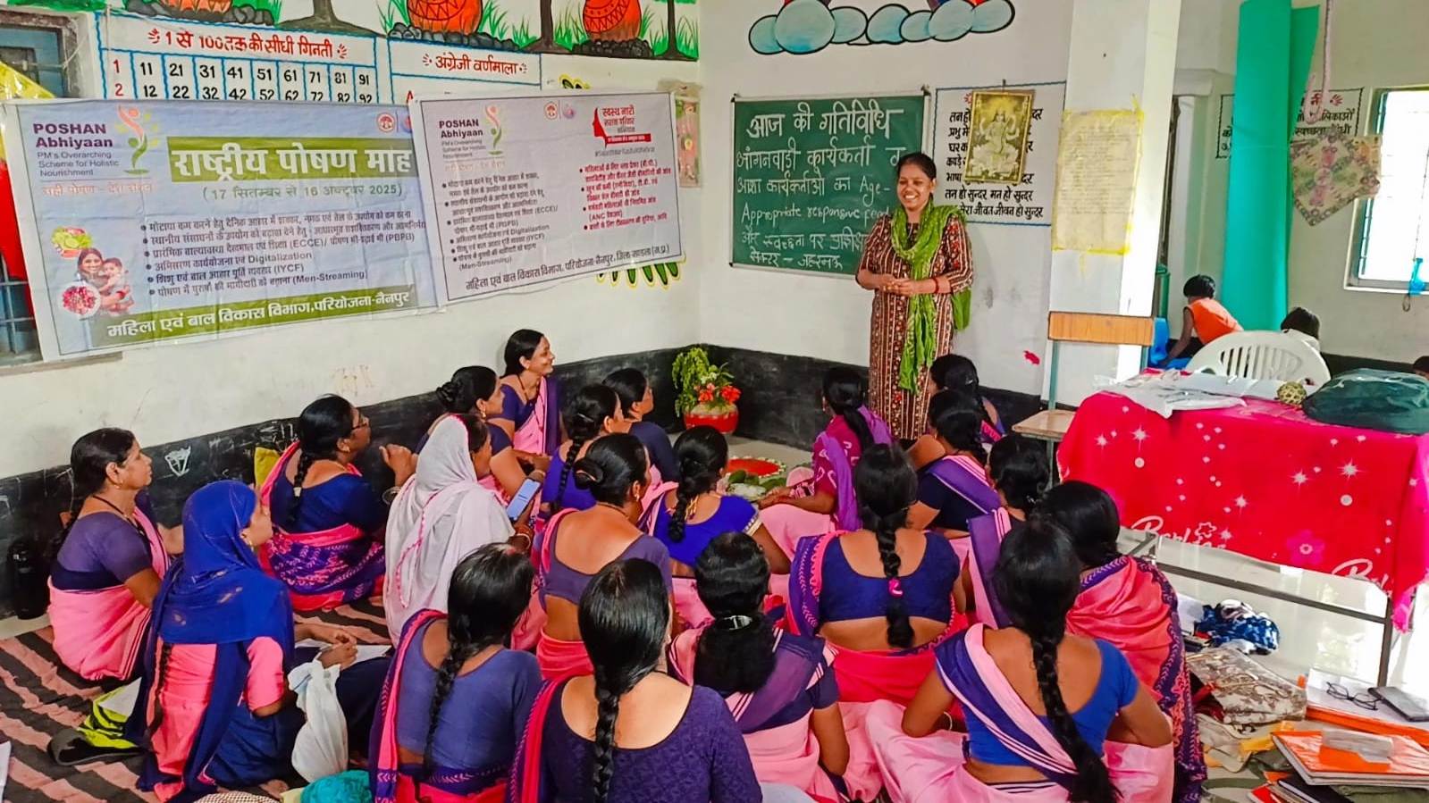 आंगनवाड़ी कार्यकर्ता व आशा कार्यकर्ताओं को गर्भवती, धात्री महिलाओं को प्रभावी स्तनपान, आईवाईसीएफ के घटक एवं 6 माह के बाद ऊपरी आहार के बारे में प्रशिक्षित किया गया। महिलाओं एवं बच्चों को संतुलित आहार, एनीमिया नियंत्रण एवं स्वास्थ्य सुरक्षा संबंधी जानकारी दी गई।