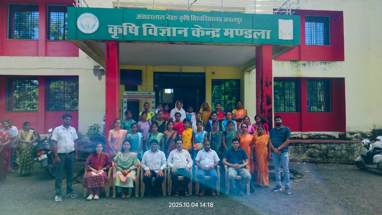 केंद्र के मृदा वैज्ञानिक एवं मास्टर ट्रेनर डॉ. आरपी अहिरवार ने प्राकृतिक खेती पर जानकारी देते हुए बताया कि प्राकृतिक खेती समय की मांग है और यह क्यों जरुरी है ? इस पर विस्तार से चर्चा की। डॉ. के.के. राणा ने फार्मर फील्ड स्कूल और प्रशिक्षण के बारे में करके देखो, देखकर सीखो और कार्य में निपुण होकर तकनिकी को खेत तक पहुचाओ पर बात की। आत्मा मंडला से आरडी जाटव और अंजू कुडापे ने कहा कि कृषि सखियों का चयन आत्मा मंडला द्वारा किया गया। जिसका प्रशिक्षण कृषि विज्ञान केंद्र मंडला में शुभारम्भ हो रहा है राष्ट्रीय प्राकृतिक खेती मिशन अंतर्गत परियोजना संचालक आत्मा, किसान कल्याण तथा कृषि विकास मण्डला एवं एन.आर.एल.एम. की निर्धारित मापदण्ड के अनुसार चयनित 50 कृषि सखियों सी.आर.पी. के पांच दिवसीय प्रशिक्षण 4 से 8 अक्टूबर 2025 तक दिया जायेगा। प्रशिक्षण के शुभारम्भ कार्यक्रम में कृषि विज्ञान केंद्र के सभी वैज्ञानिक, कर्मचारी, आत्मा से मोहित गोल्हानी एवं प्रशिक्षित मास्टर फार्मर ट्रेनर संत कुमार पनरिया और 25 क्लस्टर की कुल 50 कृषि सखिया उपस्थित रही।