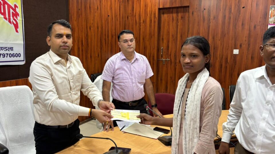 मंगलवार को आयोजित जनसुनवाई में जिले के छिवलाटोला निवासी करिश्मा भारतीया ने कलेक्टर श्री मिश्रा को आवेदन देते हुए बताया कि वह एमएससी 1 सेमेस्टर कर रही है। परिवार की आर्थिक स्थिति ठीक नही होने के कारण आगे की पढ़ाई करने में कठिनाई हो रही है। जिस पर कलेक्टर श्री मिश्रा ने रेडक्रॉस सोसायटी के माध्यम से करिश्मा को 10 हजार रूपए का चैक देकर तत्काल सहायता उपलब्ध कराई। करिश्मा ने जिला प्रशासन की इस संवेदनशील सहायता के लिए आभार व्यक्त किया है।