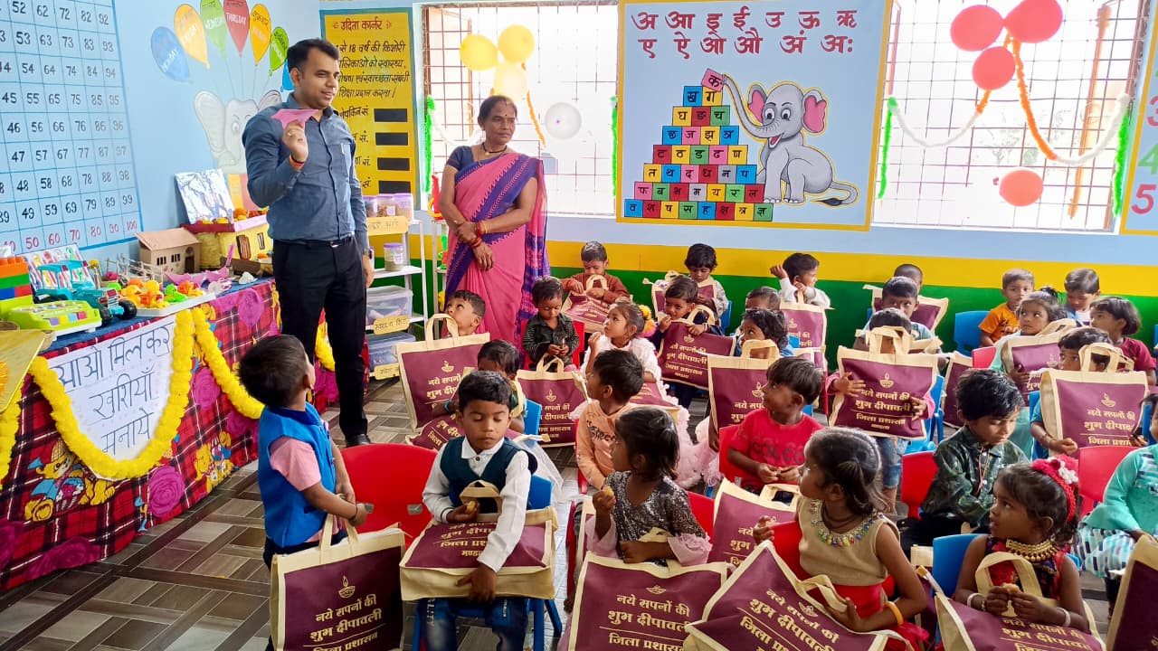 दीपावली पर्व के अवसर पर कलेक्टर श्री सोमेश मिश्रा आंगनवाड़ी केंद्र जामगांव पहुंचे और यहाँ मौजूद बच्चों के साथ हर्षाेल्लास से दिवाली मनाई। इस दौरान उन्होंने बच्चों को दिवाली की शुभकामनाएं दीं तथा उन्हें उपहार और मिठाइयाँ भेंट कीं।