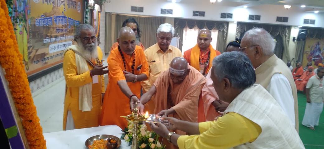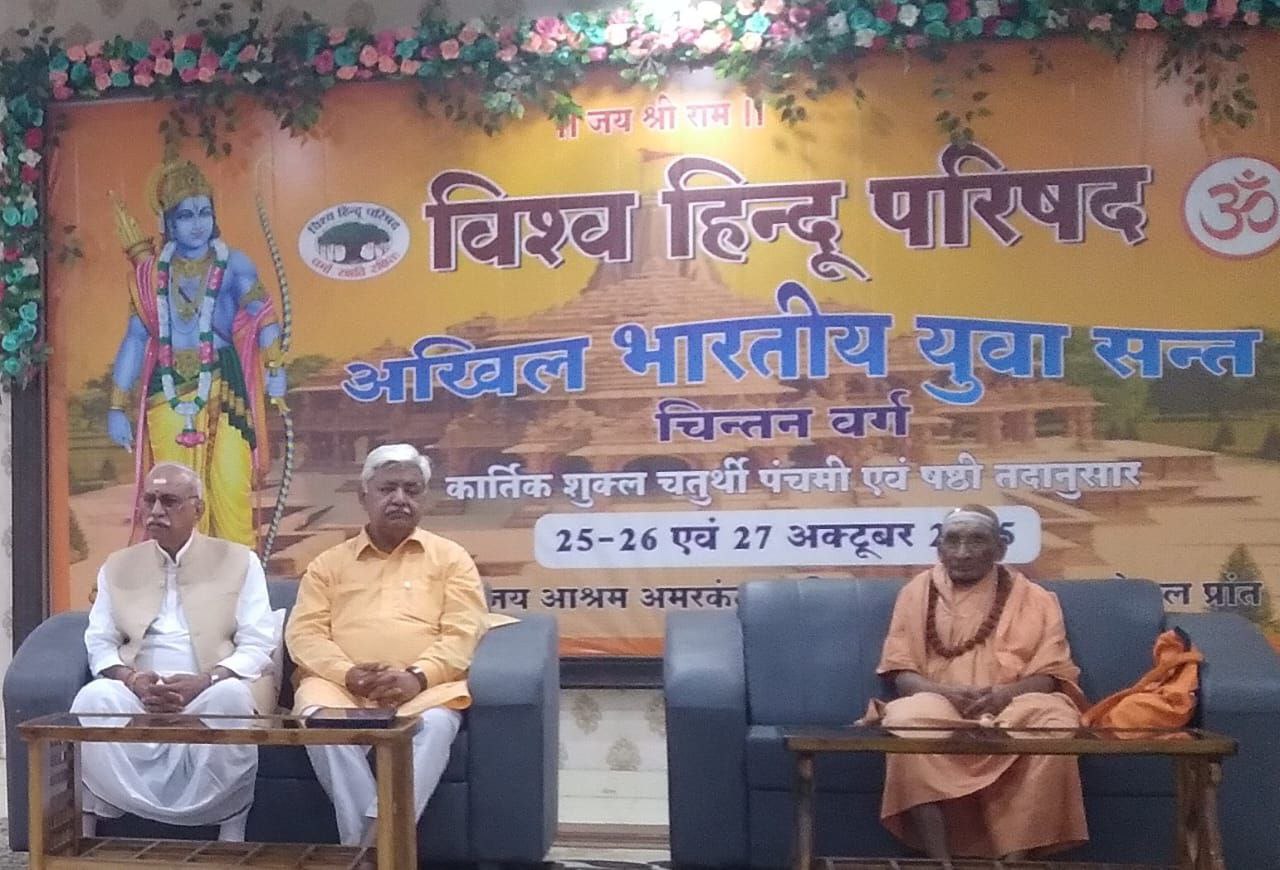 मण्डला। विश्व हिंदू परिषद का तीन दिवसीय अखिल भारतीय युवा संत चिंतन वर्ग का शुभारंभ हुआ इस अवसर पर पूज्य संत नर्मदा नंद बापू जी महाराज विश्व हिंदू परिषद के केंद्रीय अध्यक्ष आलोक कुमार एवं संरक्षक दिनेश चंद मंचासीन रहे सर्वप्रथम भगवान श्रीराम दरबार एवं भारत माता के चित्रपट पर दीप प्रज्वलित एवं आरती पूजन किया एवं आचार पद्धति एवं मंचीय परिचय उपरांत उद्बोधन हुआ कार्यक्रम का संचालन विश्व हिंदू परिषद केंद्रीय मंत्री एवं केंद्रीय धर्माचार्य संपर्क प्रमुख अशोक तिवारी द्वारा किया गया केंद्रीय अध्यक्ष आलोक कुमार ने पूज्य सन्तो का मार्गदर्शन करते हुए कहा कि राष्ट्रीय स्वयं सेवक संघ के 100 वर्ष एवं विश्व हिन्दू परिषद के 60 वर्षों में यह प्रगति हुई जब  लोग यह कहते है की हमे गर्व है कि हम हिन्दू है और देश भक्त हिन्दू जागरूक हिन्दू स्वाभिमानी हिन्दू खड़ा हो रहा है। पहले अपने को हिन्दू कहना कठिन लगता था उसके प्रति आदर नही होता था कुछ लोगों का कहना था कि सभी धर्म एक जैसे है अगर ऐसा होता तो हिंदुओं में भी आतंकवादी पैदा होते। सभी का अपने संचित करम के अनुसार जन्म हुआ है। जब राम मंदिर का आंदोलन हुआ तब कार सेवकों ने अपने खून से राम लिखा था मन्दिर निर्माण के लिए 40 दिन में देश के 65 करोड़ लोगों ने उम्मीद से ज्यादा धन एकत्र किया। हिंदुत्व का गौरव बढ़ा है अब कोई हिंदुत्व की अवहेलना नहीं कर सकता।