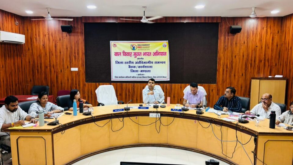 जिला स्तर पर बाल विवाह रोकथाम को लेकर कलेक्ट्रेट सभाकक्ष में बैठक आयोजित की गई। बैठक की अध्यक्षता कलेक्टर श्री सोमेश मिश्रा ने की। उन्होंने बाल विवाह की रोकथाम के लिए निर्धारित प्रक्रियाओं के पालन, जागरूकता गतिविधियों के संचालन तथा संबंधित विभागों के समन्वय पर बल दिया। महिला एवं बाल विकास विभाग सहायक संचालक श्री रोहित बड़कुल ने पावर प्वाईंट प्रेजेन्टेशन के माध्यम से जिले में बाल विवाह रोकथाम के लिए की गई तैयारियों की जानकारी दी। उन्होंने बताया कि जिले में कंट्रोल रूम का गठन किया गया है। बाल विवाह की सूचना देने वाले व्यक्ति का नाम गोपनीय रखा जाएगा।