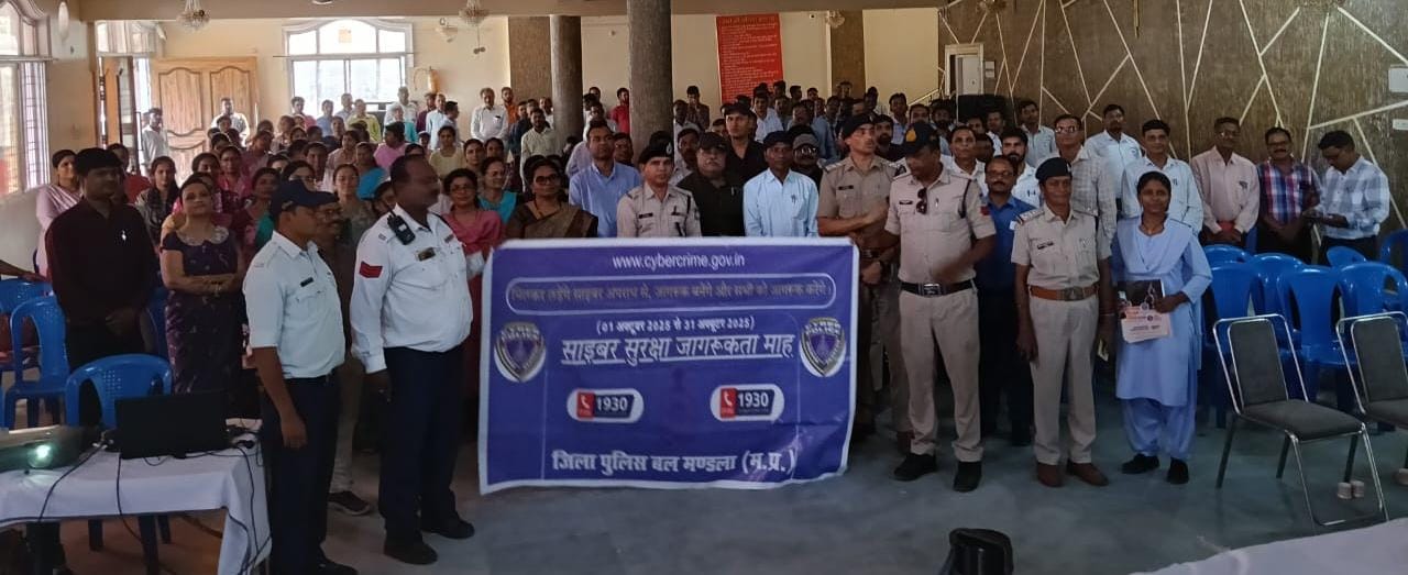 पुलिस अधीक्षक श्री रजत सकलेचा के निर्देशन में जागरूकता अभियान के तहत मंडला पुलिस द्वारा दादी की बगिया स्थित हॉल में कार्यालय जिला शिक्षा अधिकारी द्वारा आयोजित मासिक शिक्षक प्रशिक्षण कार्यक्रम में सहभागिता की गई। इस अवसर पर अतिरिक्त पुलिस अधीक्षक श्री शिवकुमार वर्मा सहित अन्य पुलिस के प्रभारी अधिकारियों द्वारा प्रशिक्षण में उपस्थित लगभग 200 शिक्षकों को साइबर सुरक्षा जागरूकता माह अक्टूबर के अंतर्गत साइबर क्राइम से बचाव के उपाय, हेल्पलाइन नंबर 1930, साइबर फ्रॉड से सुरक्षा, यातायात नियमों एवं सड़क सुरक्षा से संबंधित योजना राहवीर योजना, नकदी रहित इलाज, महिला अपराध से संबंधित कानूनी जानकारी, “नशे से दूरी है जरूरी” विषय पर जागरूकता आदि विषयों पर जानकारी दी गई।