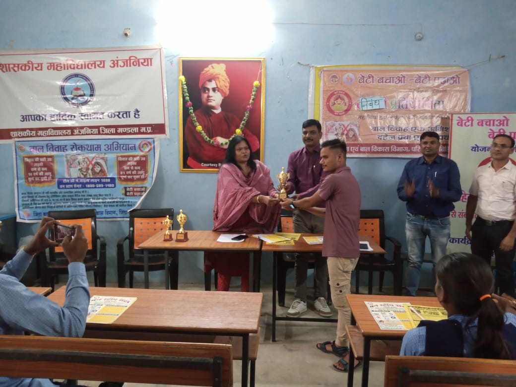 शासकीय महाविद्यालय अंजनिया में राष्ट्रीय सेवा योजना इकाई द्वारा व महिला एवं बाल विकास विभाग जिला मंडला के तत्वाधान में मिशन वात्सल्य, बाल भिक्षावृत्ति की रोकथाम के लिए जागरूकता अभियान का आयोजन किया गया। इस अभियान में विद्यार्थियों को चाइल्ड हेल्पलाइन, महिला हेल्पलाइन, साइबर हेल्पलाइन, राष्ट्रीय महिला हेल्पलाइन, पुलिस हेल्पलाइन, प्रधानमंत्री मातृत्व योजना, शी बॉक्स पोर्टल आदि की महत्वपूर्ण जानकारी दी गई। इसके अलावा जीने का अधिकार, स्वास्थ्य एवं पोषण, राष्ट्रीयता, विकास का अधिकार, शिक्षा, देखभाल आश्रय, मनोरंजन गतिविधियां, सुरक्षा का अधिकार, अप्राकृतिक आपदा से संबंधित महत्वपूर्ण जानकारी एवं 18 वर्ष की आयु तक के बेसहारा निराश्रित परित्यक्त, सड़क पर रहने वाले, विधि विरोधी कार्य करने वाले बालकों के पुनर्वास, पॉक्सो अधिनियम 2012, असुरक्षित स्पर्श को पहचानें और इसका निदान से संबंधित जानकारी दी गई।