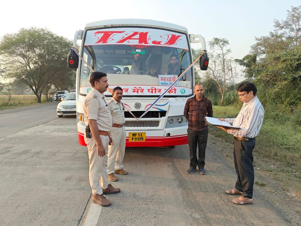 चैकिंग के दौरान वाहनों की फिटनेस, परमिट, बीमा, पीयूसी, अग्निशमन यंत्र, फर्स्ट एड बॉक्स, व्ही एलटीडी, एस.एल.डी, रेडियम, ओव्हरलोडिंग एवं अधिक किराया लेने आदि की जांच की गई। चैकिंग के दौरान 9 वाहनों पर मोटर यान अधिनियम 1988 की विभिन्न प्रावधानों के तहत 8500 रूपये का समन शुल्क एवं बस क्रमांक MP28-P-1786 बिना परमिट संचालित पाये जाने पर जप्त कर परिवहन कार्यालय मण्डला में सुरक्षार्थ रखा गया है । चैकिंग कार्यवाही में जिला परिवहन अधिकारी श्री बिमलेश कुमार गुप्ता, नायब तहसीलदार श्री रामसिंह उलाडी, यातायात उप निरीक्षक श्री योगेश राजपूत एवं परिवहन कार्यालय का स्टाफ उपस्थित रहा। चैकिंग लगातार जारी रहेगी।