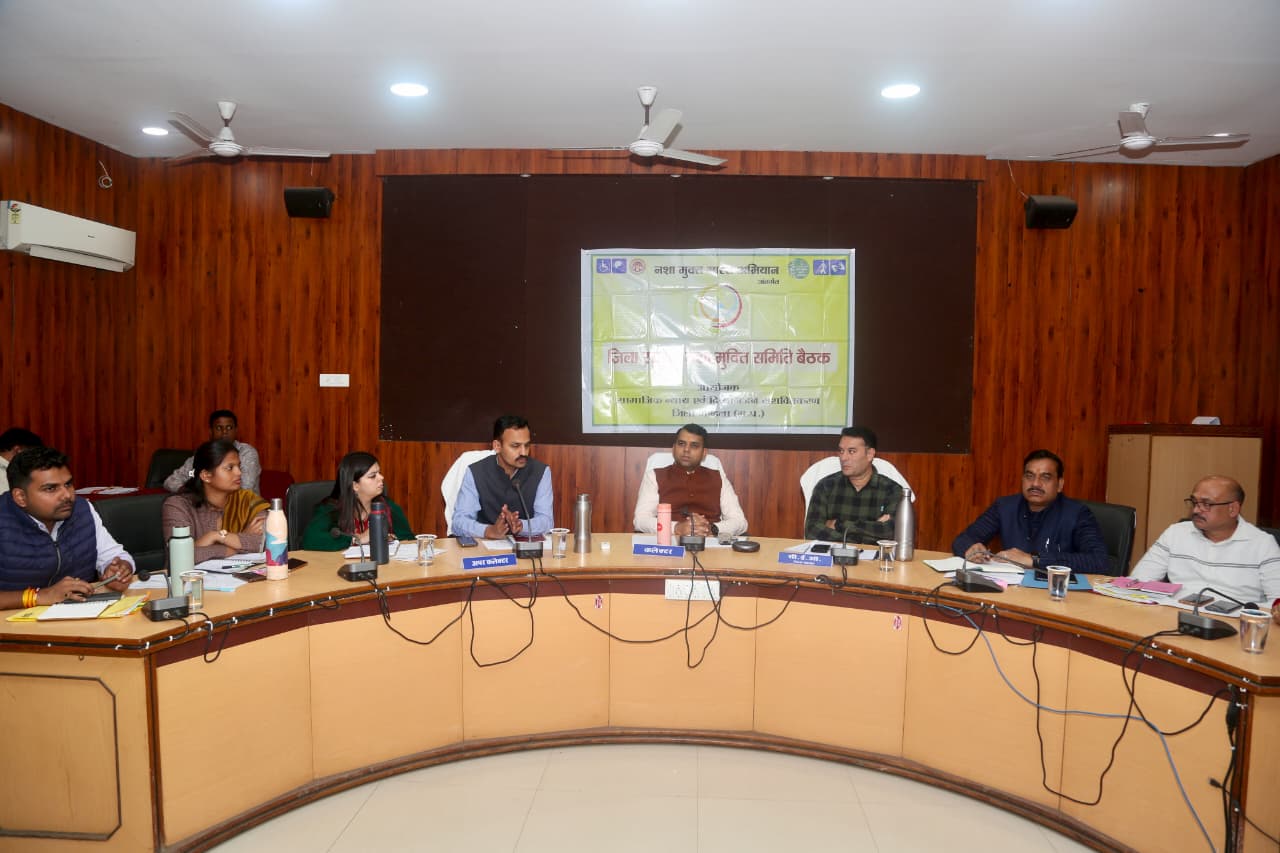 जिला योजना भवन में जिला स्तरीय नशामुक्ति समिति की बैठक आयोजित की गई। बैठक में उपसंचालक सामाजिक न्याय श्री रोहित बड़कुल द्वारा पिछली तिमाही में नशामुक्त भारत अभियान के अंतर्गत की गई गतिविधियों एवं विभागीय कार्यवाहियों का प्रस्तुतिकरण किया गया। जिसमें पुलिस विभाग द्वारा दर्ज किए गए प्रकरण, आबकारी विभाग द्वारा दर्ज कराए गए प्रकरण आदि के संबंध में संख्यात्मक प्रस्तुतिकरण हुआ। उन्होंने स्कूल, कॉलेज एवं अन्य स्थानों पर आयोजित किए गए जागरूकता कार्यक्रमों के संबंध में भी जानकारी दी।