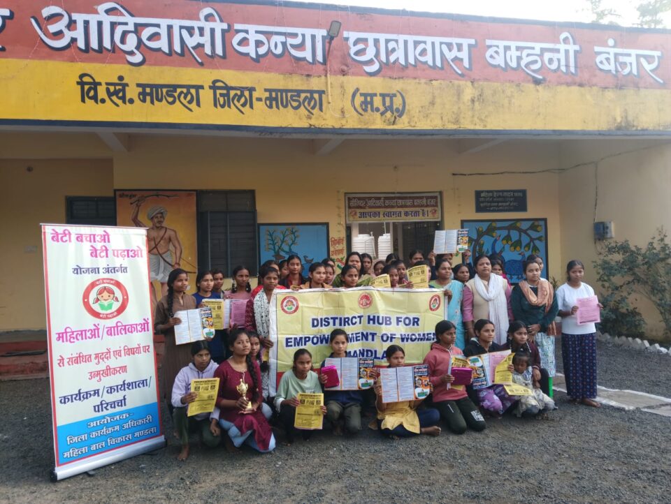 आदिवासी कन्या छात्रावास बम्हनी बंजर में लिंग आधारित हिंसा अनुसार जागरूकता कार्यक्रम का आयोजन किया गया। वन स्टॉप सेंटर की प्रशासक सुश्री प्रेरणा मर्सकोले द्वारा छात्राओं को संबल और सामर्थ्य योजना के बारे में जानकारी देते हुये वन स्टॉप सेंटर द्वारा दी जाने वाली सेवाओं के बारे में बताया। छात्राओं के मध्य रंगोली एवं अन्य प्रतियोगिता भी कराई गई जिसमें प्रथम, द्वितीय एवं तृतीय स्थान प्राप्त करने वाले छात्राओं को पुरूस्कार देकर उनको प्रोत्साहित किया गया। साथ ही बेटी बचाओ बेटी पढ़ाओ अंतर्गत हस्ताक्षर अभियान भी किया गया। जिसमें छात्राओं के द्वारा हस्ताक्षर कर बाल विवाह रोकथाम हेतु संकल्प लिया गया।