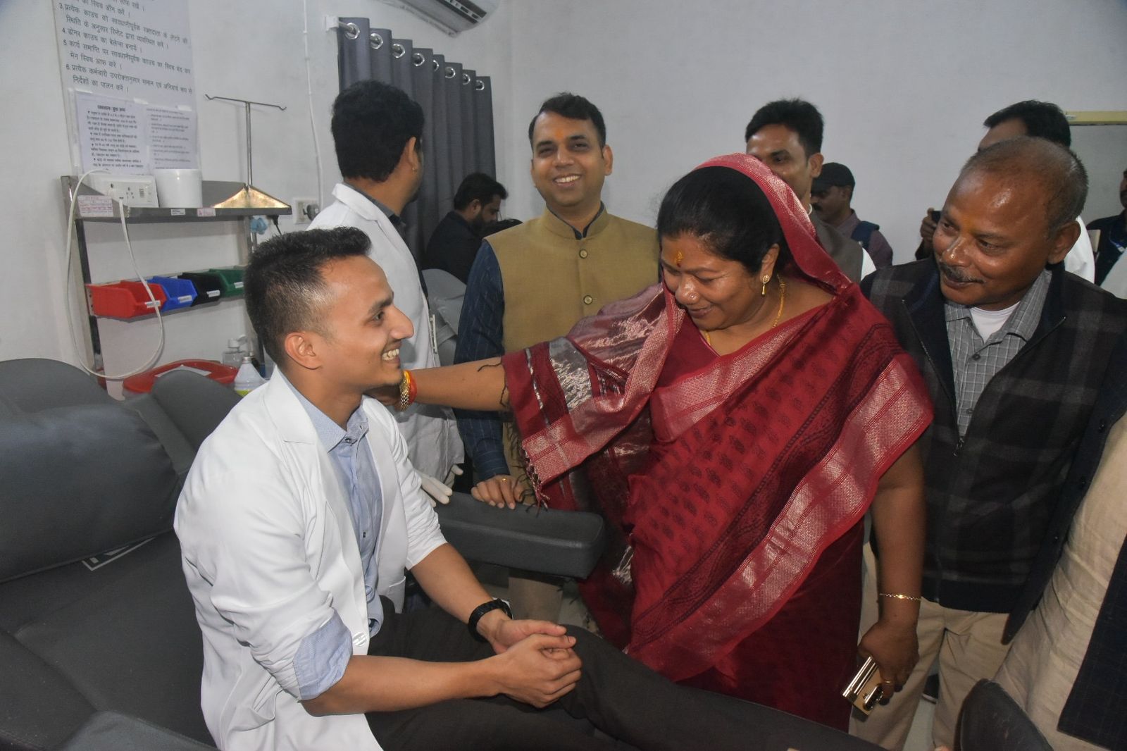 मध्यप्रदेश की लोक स्वास्थ्य यांत्रिकी मंत्री श्रीमती संपतिया उइके जिला चिकित्सालय मंडला के ब्लडबैंक में आयोजित रक्तदान शिविर में पहुँची। यहाँ उन्होंने फीता काटकर शिविर का शुभारंभ किया। जनजातीय गौरव दिवस के अवसर पर आयोजित इस रक्तदान शिविर में उन्होंने रक्तदाताओं से मुलाकात कर इस पुण्य कार्य के लिए उन्हें साधुवाद दिया और कहा कि आप लोग रक्तदान के पश्चात सेल्फी प्वाईंट पर सेल्फी लेकर उसे सोशल मीडिया के माध्यम से प्रचारित करें, जिससे अन्य युवा भी रक्तदान के इस पुण्य कार्य के लिए प्रेरित हो सकें।
