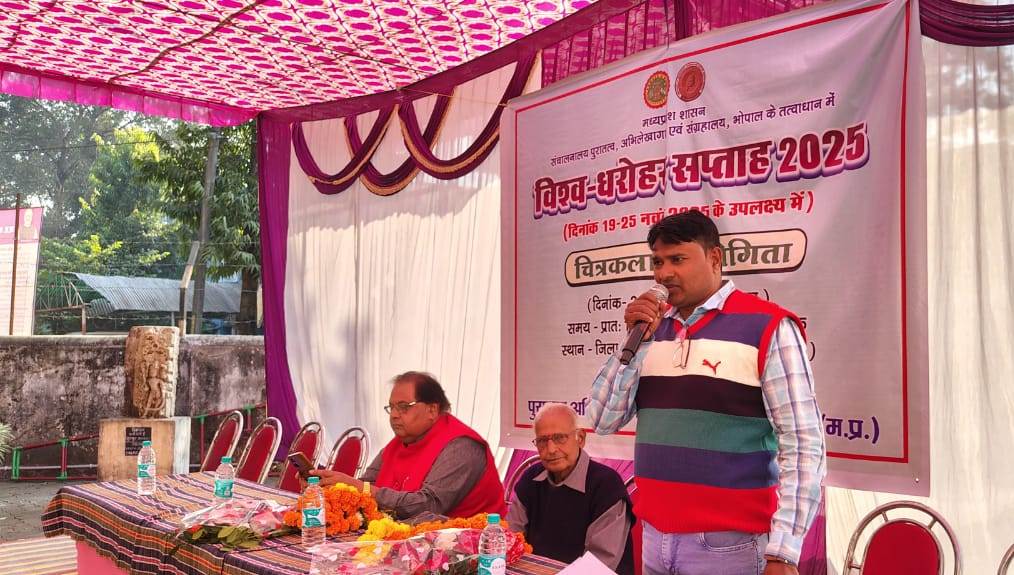 जिला पुरातत्व संग्रहालय मण्डला में 19 से 25 नवंबर 2025 तक विश्व धरोहर सप्ताह का आयोजन किया जा रहा है। विश्व धरोहर सप्ताह के अवसर पर जिला पुरातत्व संग्रहालय मंडला में व्याख्यान माला एवं विद्यालय के छात्र-छात्राओं ने चित्रकला प्रतियोगिता में सहभागिता की। उक्त कार्यक्रम में मंडला नगर के विभिन्न विद्यालयों के बच्चों ने रूचिपूर्वक भाग लिया।