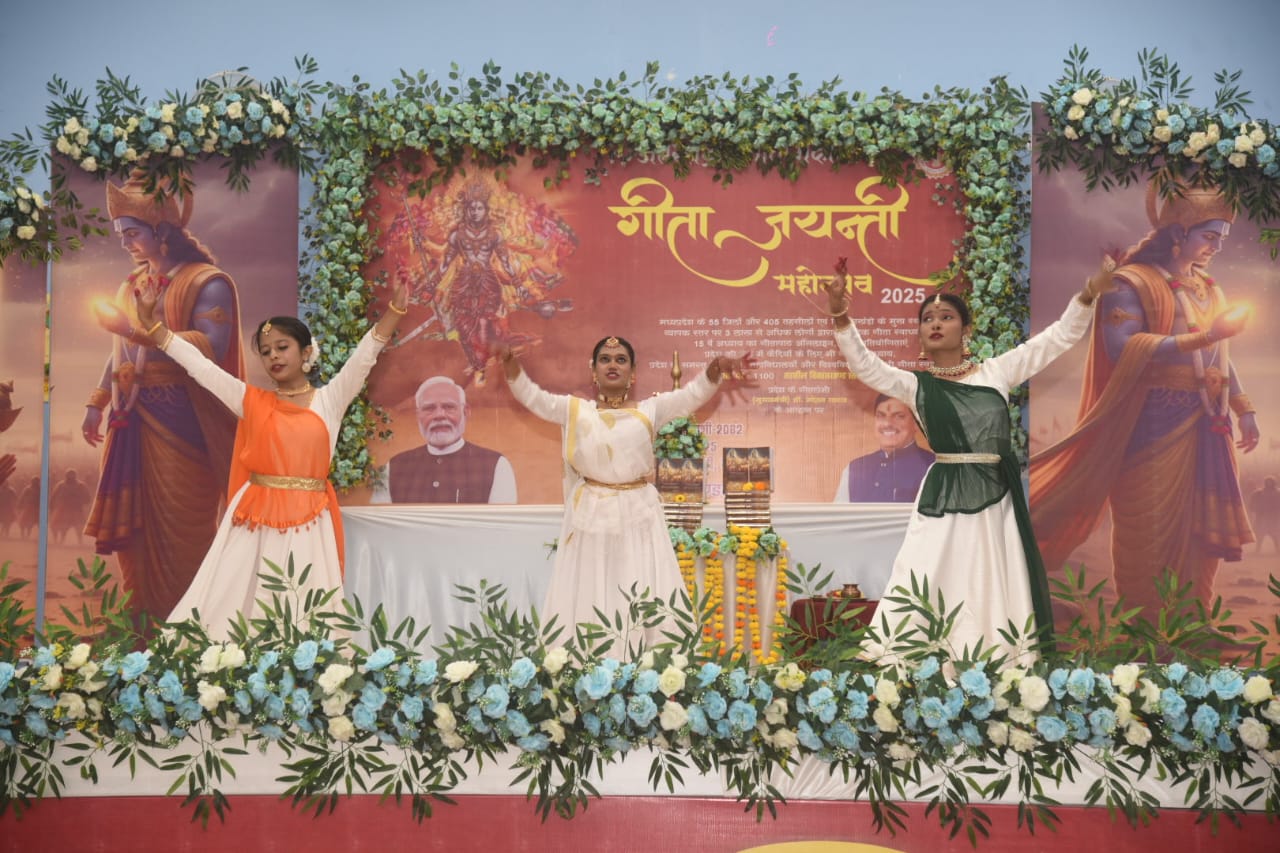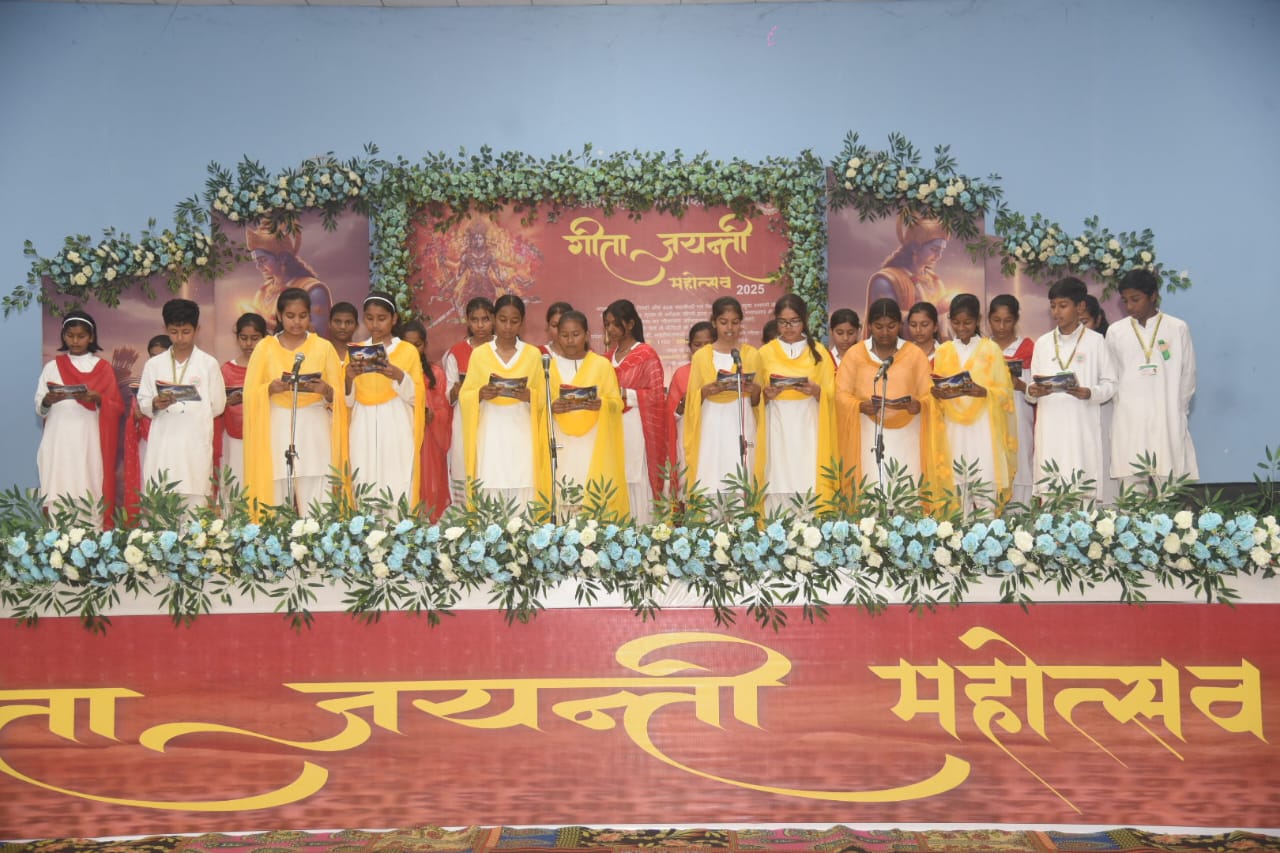 कार्यक्रम में इस्कॉन टेम्पल उज्जैन से पधारे धर्मगुरु ने गीता सार का अत्यंत सरल और प्रभावी वर्णन प्रस्तुत किया। उन्होंने जीवन में कर्तव्य, आत्मज्ञान, समभाव और कर्मयोग के महत्व को समझाते हुए कहा कि गीता मानव जीवन को दिशा देने वाली अद्वितीय धरोहर है। उनके प्रवचन के दौरान पूरा सभागार भाव-विभोर हो उठा।