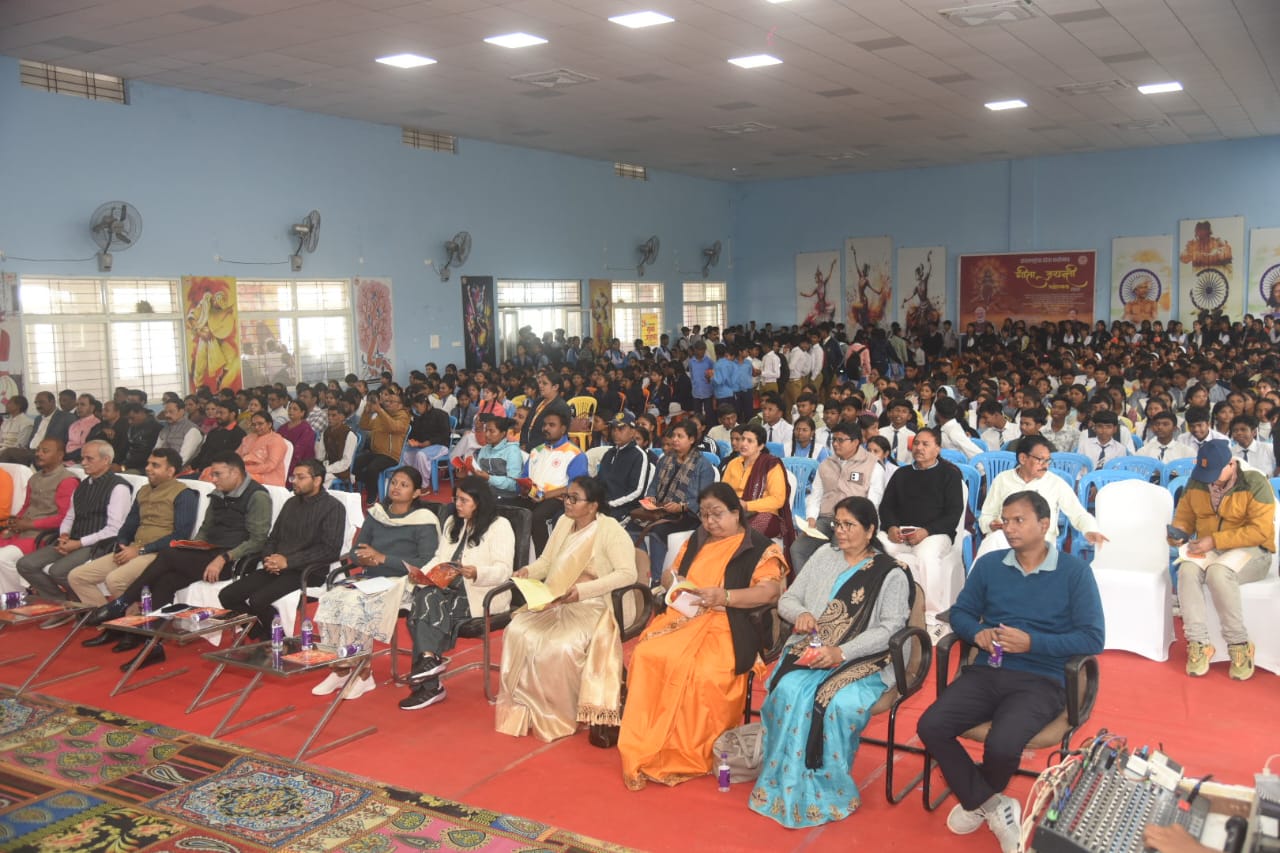 कार्यक्रम में मुख्य अतिथि के रूप में उपस्थित जिला पंचायत अध्यक्ष श्री संजय कुशराम ने अपने संबोधन में कहा कि श्रीमद्भगवद्गीता केवल एक धार्मिक ग्रंथ नहीं, बल्कि जीवन का व्यवहारिक मार्गदर्शन है। उन्होंने कहा कि आज की तेज़ रफ़्तार दुनिया में गीता के उपदेश हर व्यक्ति को शांति, संतुलन और कर्तव्यनिष्ठा के मार्ग पर ले जाते हैं। श्री कुशराम ने युवाओं से गीता के संदेशों को आत्मसात कर समाज निर्माण में योगदान देने की अपील की।