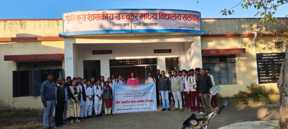 मिशन शक्ति हब फॉर एंपावरमेंट ऑफ वूमेन के तहत महिलाओं के सशक्तिकरण के लिए चलाए जा रहे जागरूकता कार्यक्रम में एकीकृत शासकीय उच्च.माध्य.विद्या. देवहारा (बम्हनी) तहसील घुघरी एवं एकीकृत शासकीय उच्च.माध्य.वि. सलवाह विकासखंड घुघरी में मानवाधिकार दिवस मनाते हुये लिंग आधारित हिंसा उन्मूलन पखवाड़ा का समापन और बाल विवाह मुक्त भारत अभियान का आयोजन किया गया। कार्यक्रम में मुख्य वक्ता के रूप में सुश्री प्रेरणा मर्सकोल प्रशासक वन स्टॉप सेंटर महिला एवं बाल विकास विभाग जिला मंडला के द्वारा उपस्थित प्रतिभागियों को यौन शोषण दुर्व्यवहार और उत्पीड़न के विरूद्ध जागरूक किया। साथ ही वन स्टॉप सेंटर में एक ही छत के नीचे दी जाने वाली सहायताओं से लोगों को अवगत कराया एवं हब फॉर एंपावरमेंट ऑफ वूमेन अंतर्गत लोगों को बताया कि किसी भी प्रकार की समस्याओं को लेकर एवं शासन की योजनाओं से जुड़ने एवं योजनाओं की जानकारी हेतु हब कार्यालय में आकर जानकारी प्राप्त कर सकते हैं।