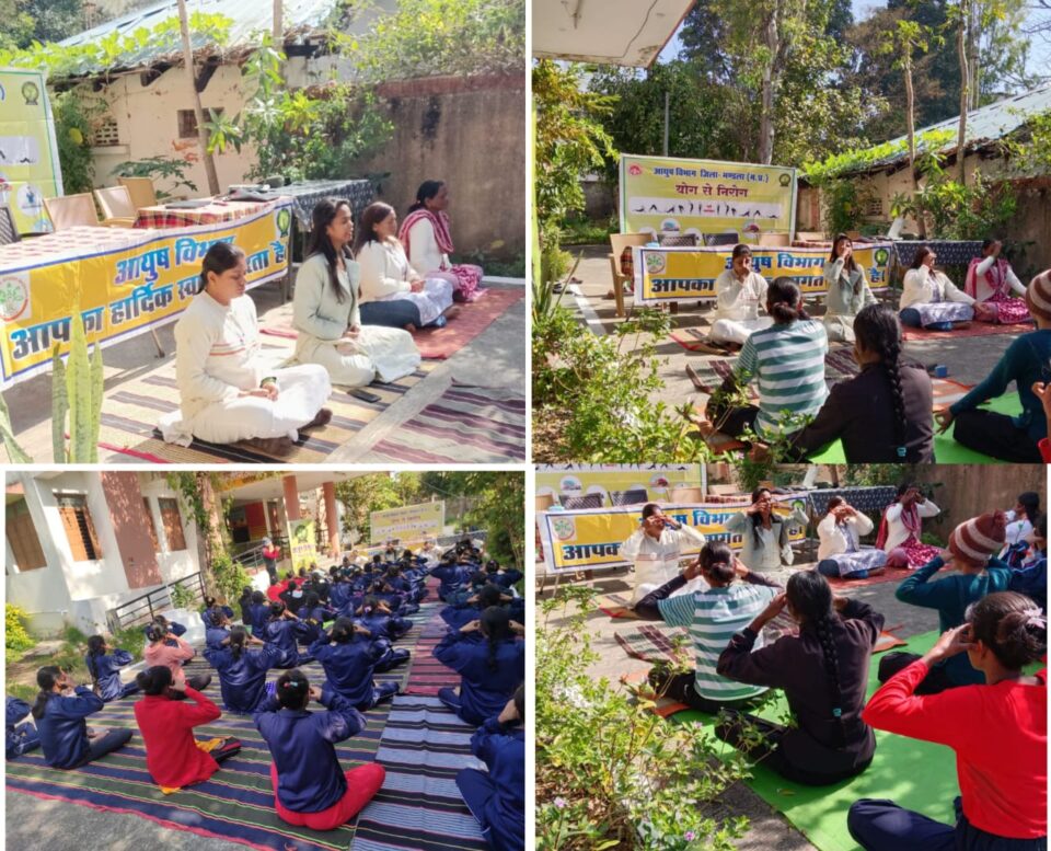 विश्व ध्यान दिवस के उपलक्ष्य में रविवार को जिला आयुष अधिकारी डॉ. गायत्री अहाके के निर्देशानुसार शासकीय आयुर्वेद जिला चिकित्सालय मण्डला द्वारा नवीन आदिवासी महाविद्यालय बालिका छात्रावास मण्डला में अधीक्षिका श्रीमती प्रमिला तेकाम के सहयोग से मानसिक स्वास्थ्य संबंधी समस्याओं के निवारण संबंधी सेमिनार एवं प्राणायाम, ध्यान का आयोजन किया गया। जिसमें 50 छात्राओं ने हिस्सा लिया। इस दौरान आयुष विभाग का चिकित्सा दल मौजूद रहा।