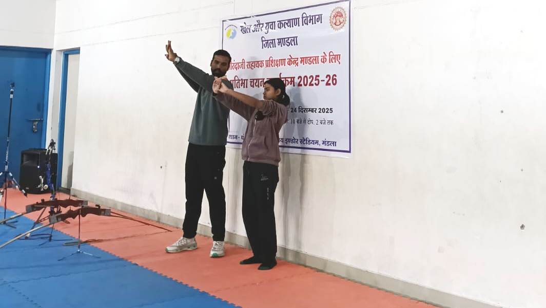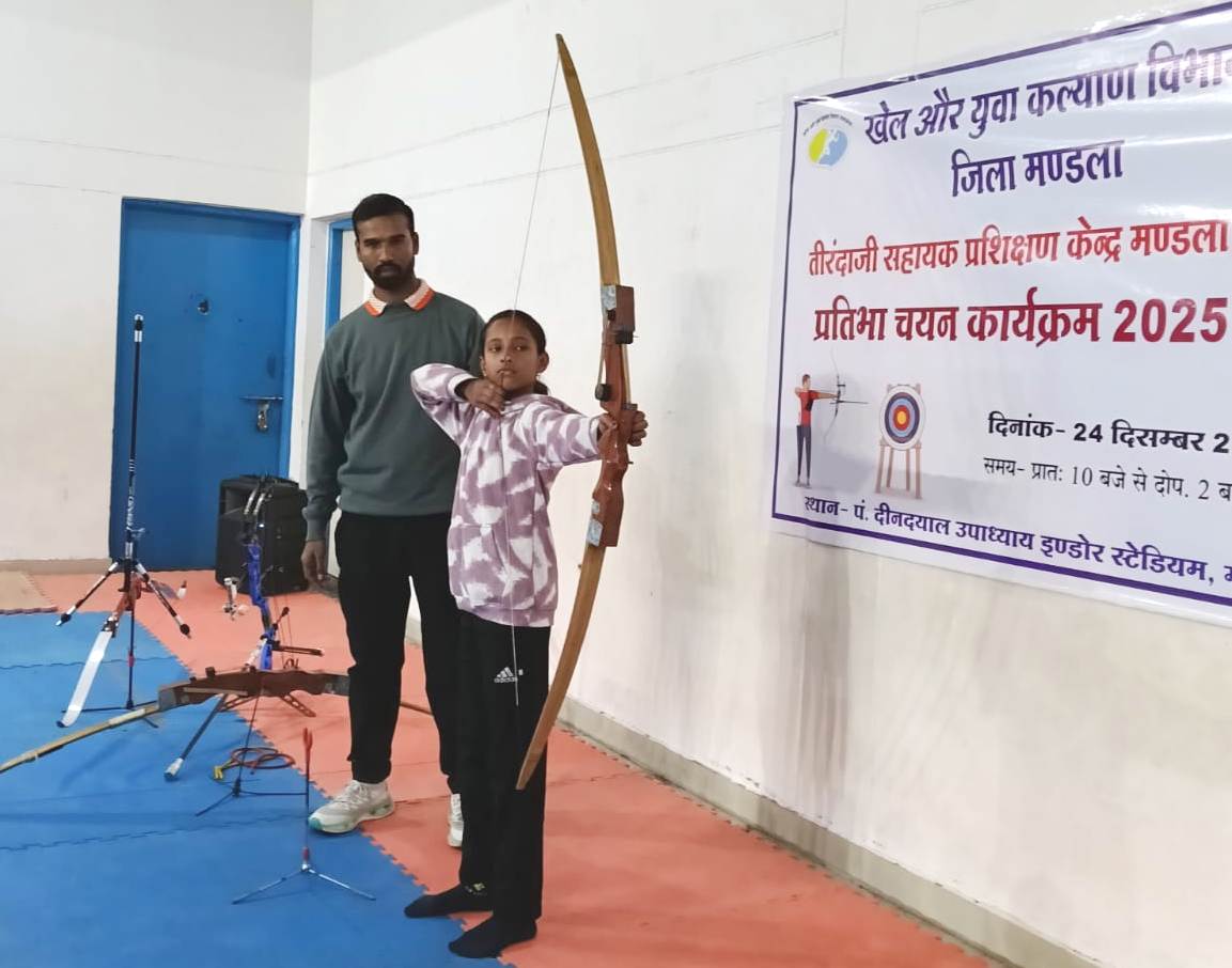कलेक्टर श्री सोमेश मिश्रा और पुलिस अधीक्षक श्री रजत सकलेचा के मार्गदर्शन में जिला खेल और युवा कल्याण कार्यालय मण्डला के तीरंदाजी सहायक प्रशिक्षण केंद्र मण्डला के लिए प्रतिभा चयन कार्यक्रम 24 दिसम्बर को प्रातः 10 बजे से पं. दीनदयाल उपाध्याय इंडोर स्टेडियम मण्डला में आयोजित किया गया। प्रतिभा चयन कार्यक्रम में मण्डला जिले के 9 वर्ष से 16 वर्ष तक की आयु के 180 बालक-बालिका शामिल हुए। केंद्रीय विद्यालय, विसडम वर्ल्ड स्कूल, शासकीय जगन्नाथ उत्कृष्ट विद्यालय, रानी अवंती बाई उमा विद्यालय क्रमांक 02, ज्ञानदीप विद्यालय, भारत ज्योति विद्यालय, मोंटफोर्ट विद्यालय के छात्रों ने प्रतिभागिता की। प्रतिभा चयन में लगभग 60 बालिका और 120 बालकों ने प्रतिभा चयन के प्रथम चरण में सहभागिता की।