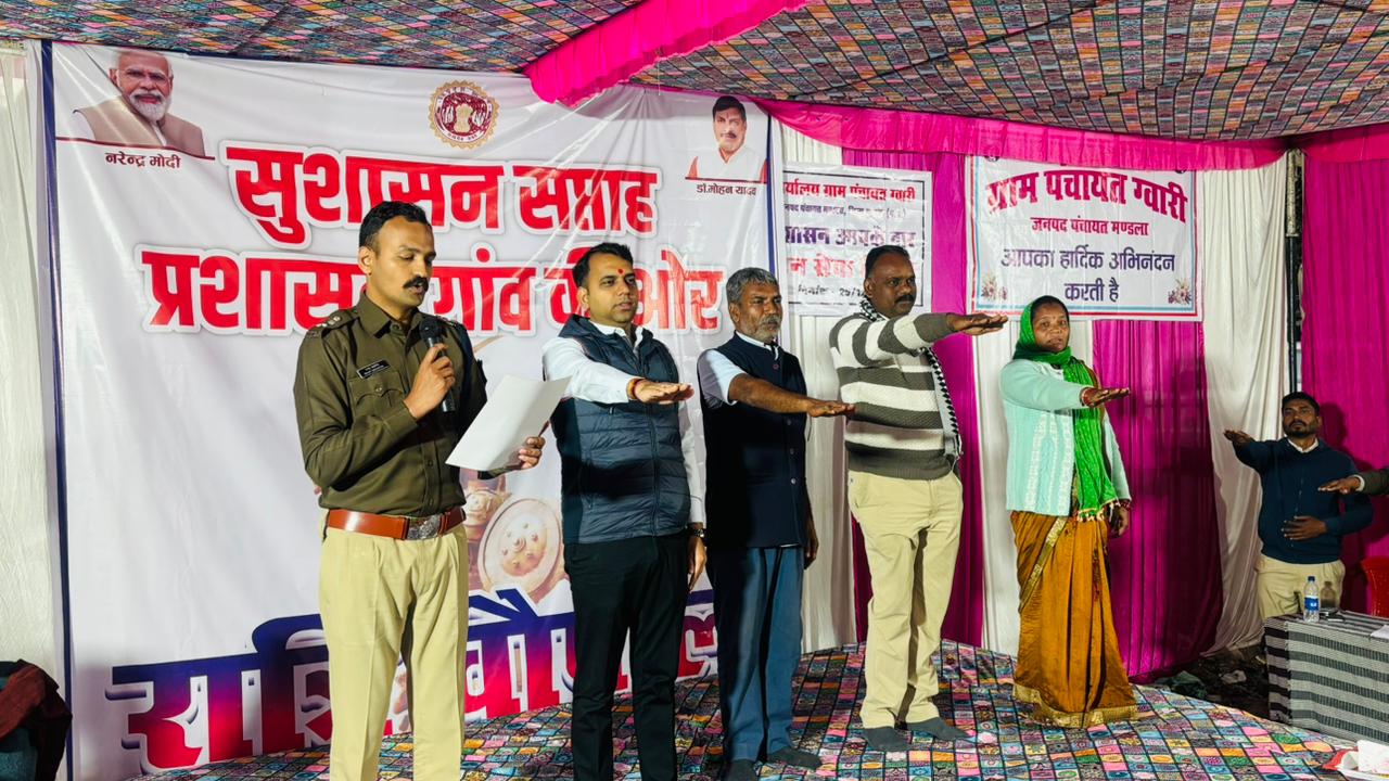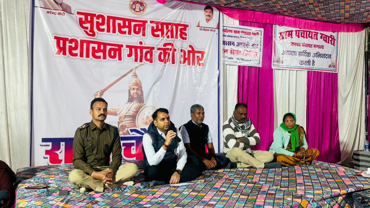 सुशासन सप्ताह-2025 के अंतर्गत गुरुवार को मंडला जिले के ग्राम ग्वारी में ‘प्रशासन गाँव की ओर’ अभियान के तहत शिविर का आयोजन किया गया। शिविर में कलेक्टर श्री सोमेश मिश्रा ने उपस्थित ग्रामीणों से सीधा संवाद करते हुए शासन की विभिन्न जनकल्याणकारी योजनाओं, सेवाओं एवं प्रशासनिक प्रक्रियाओं की विस्तृत जानकारी दी।