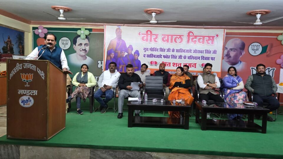 मण्डला। वीर बाल दिवस के अवसर पर सिख धर्म के दशम गुरु, श्री गुरु गोविंद सिंह जी के साहिबजादे साहिबजादा जोरावर सिंह जी एवं साहिबजादा फतेह सिंह जी के बलिदान दिवस पर भारतीय जनता पार्टी कार्यालय में श्रद्धांजलि कार्यक्रम आयोजित किया गया। इस अवसर पर उनके तेल्यचित्र पर पुष्प अर्पित कर दीप प्रज्वलित किया गया और साहिबजादों के अद्भुत साहस, शौर्य और बलिदान को नमन किया गया। कार्यक्रम में कैबिनेट मंत्री श्रीमती संपतिया उईके एवं भाजपा जिला अध्यक्ष प्रफुल्ल मिश्रा मुख्य रूप से उपस्थित रहे। साथ ही भाजपा पदाधिकारी, कार्यकर्ता एवं गणमान्य नागरिकों ने श्रद्धांजलि अर्पित की। इस अवसर पर कैबिनेट मंत्री श्रीमती संपतिया उइके ने कहा कि साहिबजादा जोरावर सिंह जी और साहिबजादा फतेह सिंह जी ने अल्पायु में धर्म, संस्कृति और देश की रक्षा के लिए जो सर्वोच्च बलिदान दिया, वह भारतीय इतिहास में स्वर्णाक्षरों में अंकित है। उनका त्याग हमें अन्याय और अत्याचार के विरुद्ध अडिग रहने की प्रेरणा देता है। वीर बाल दिवस’ आने वाली पीढ़ियों को राष्ट्रभक्ति और संस्कारों से जोड़ने का अवसर है। वहीं भाजपा जिला अध्यक्ष श्री प्रफुल्ल मिश्रा ने कहा कि साहिबजादों का बलिदान केवल सिख समाज ही नहीं, बल्कि सम्पूर्ण भारत के लिए प्रेरणास्रोत है। इतनी कम उम्र में भी उन्होंने धर्म और सत्य के मार्ग से विचलित होना स्वीकार नहीं किया। भारतीय जनता पार्टी उनके आदर्शों को आत्मसात कर समाज और राष्ट्र निर्माण के लिए सतत कार्य करती रहेगी। कार्यक्रम का समापन साहिबजादों के बलिदान को स्मरण करते हुए उनके आदर्शों पर चलने का संकल्प लेकर किया गया। इस दौरान जिला उपाध्यक्ष जयदत्त झा, महेंद्र पटेल,जिला मंत्री जोरावर सिंह,मंडल अध्यक्ष शिवा रानू राजपूत,ललित लोधी, अनीता तिवारी, महिला मोर्चा प्रदेश मंत्री शशि पटेल,पूर्व जिला उपाध्यक्ष सुषमा मिश्रा,मंडल महामंत्री सौरभ गुप्ता, मयंक विश्वकर्मा, रानू ठाकुर,लक्ष्मण पटेल सहित अन्य कार्यकर्ता एवं पदाधिकारी मौजूद रहे।