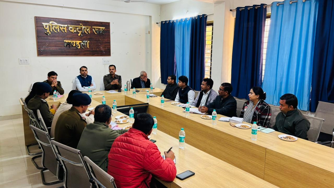 जिले में सड़क दुर्घटनाओं की रोकथाम और यातायात नियमों के प्रभावी क्रियान्वयन को लेकर पुलिस कंट्रोल रूम में कलेक्टर श्री सोमेश मिश्रा एवं पुलिस अधीक्षक श्री रजत सकलेचा की संयुक्त अध्यक्षता में महत्वपूर्ण बैठक आयोजित की गई। बैठक में परिवहन, पुलिस, आरटीओ सहित संबंधित विभागों के अधिकारियों से विस्तृत चर्चा की गई।