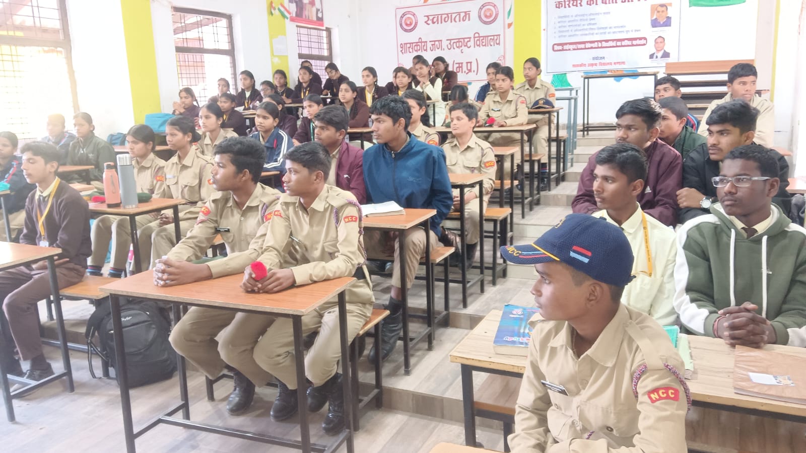 सेना में करियर के अवसर, करियर मार्गदर्शकों और एनसीसी अधिकारियों ने भारतीय सेना में भर्ती होने की विभिन्न प्रक्रियाओं, जैसे अग्निपथ योजना के बारे में बताया। एनसीसी कैडेट्स की सहभागिता कार्यक्रम में विद्यालय के एनसीसी कैडेट्स ने सक्रिय रूप से भाग लिया। उन्हें बताया गया कि एनसीसी प्रमाण पत्र सेना की भर्ती में किस प्रकार सहायक होते हैं ? प्राचार्य द्वारा अपने संबोधन में छात्रों को अनुशासन और देशभक्ति का महत्व समझाया और उन्हें राष्ट्र की सुरक्षा में योगदान देने के लिए प्रेरित किया गया।