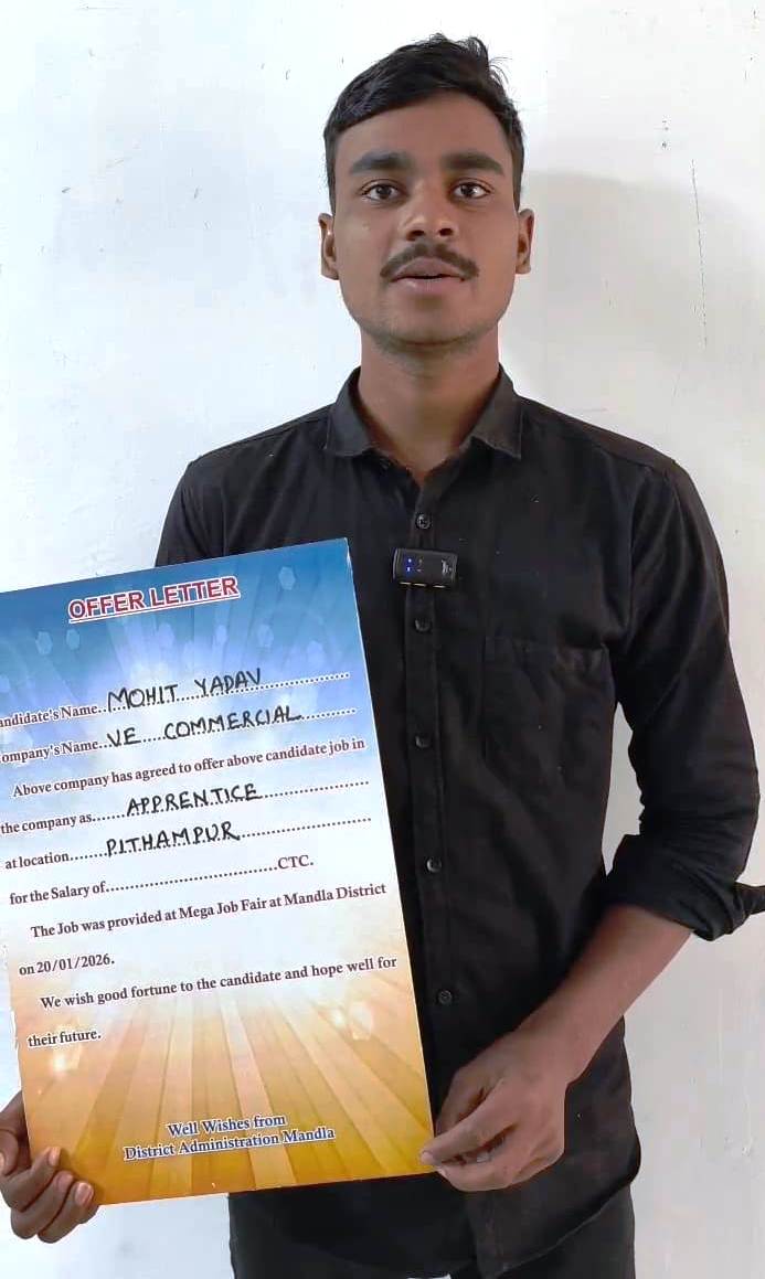 रोजगार मेले में हुए साक्षात्कार की प्रक्रिया ने न सिर्फ उनकी प्रतिभा को निखारा, बल्कि उनके आत्मविश्वास को भी नई मजबूती दी। सही मार्गदर्शन, मेहनत और लगन का परिणाम यह रहा कि श्री मोहित यादव का चयन पीथमपुर स्थित वॉल्वो आईसर कंपनी में हो गया। मंडला में आयोजित इस रोजगार मेले में उन्हें कैबिनेट मंत्री श्रीमती सम्पतिया उइके द्वारा ऑफर लेटर दिया गया।