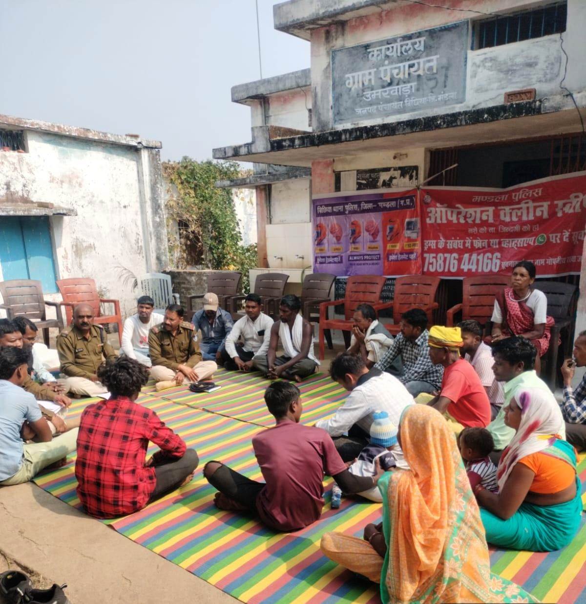 पुलिस अधिकारियों एवं कर्मचारियों द्वारा पुलिस चौपाल थाना खटिया क्षेत्र अंतर्गत ग्राम सौतिया एवं पांडीवारा चौकी ग्राम धनपुरी, चौकी मनेरी अंतर्गत कस्बा मनेरी, थाना घुघरी अंतर्गत ग्राम खमतरा, चौकी अंजनिया अंतर्गत ग्राम माधोपुर, थाना बिछिया अंतर्गत ग्राम सानी मोहगांव (उमरवाड़ा), कटंगी एवं घोट (बरखेड़ा) तथा थाना मवई अंतर्गत ग्राम दाढ़ी, वनग्राम सूरजपुरा में आयोजित कर जागरूकता कार्यक्रम चलाया गया।